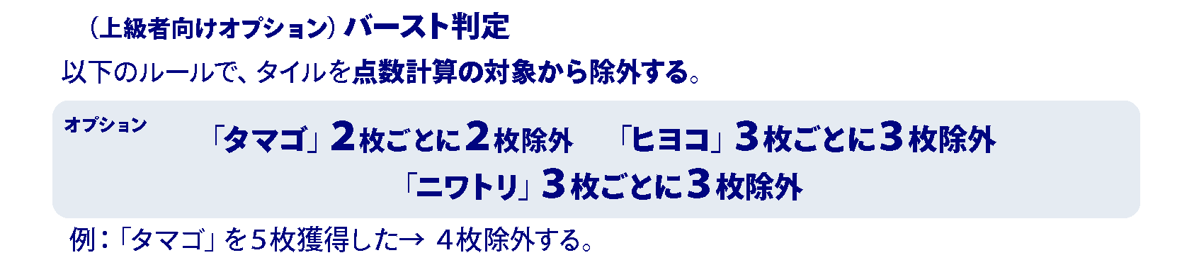 また、このゲームでは上級者向けのバーストルール(ゆるめ)をオプションで付けられるので、