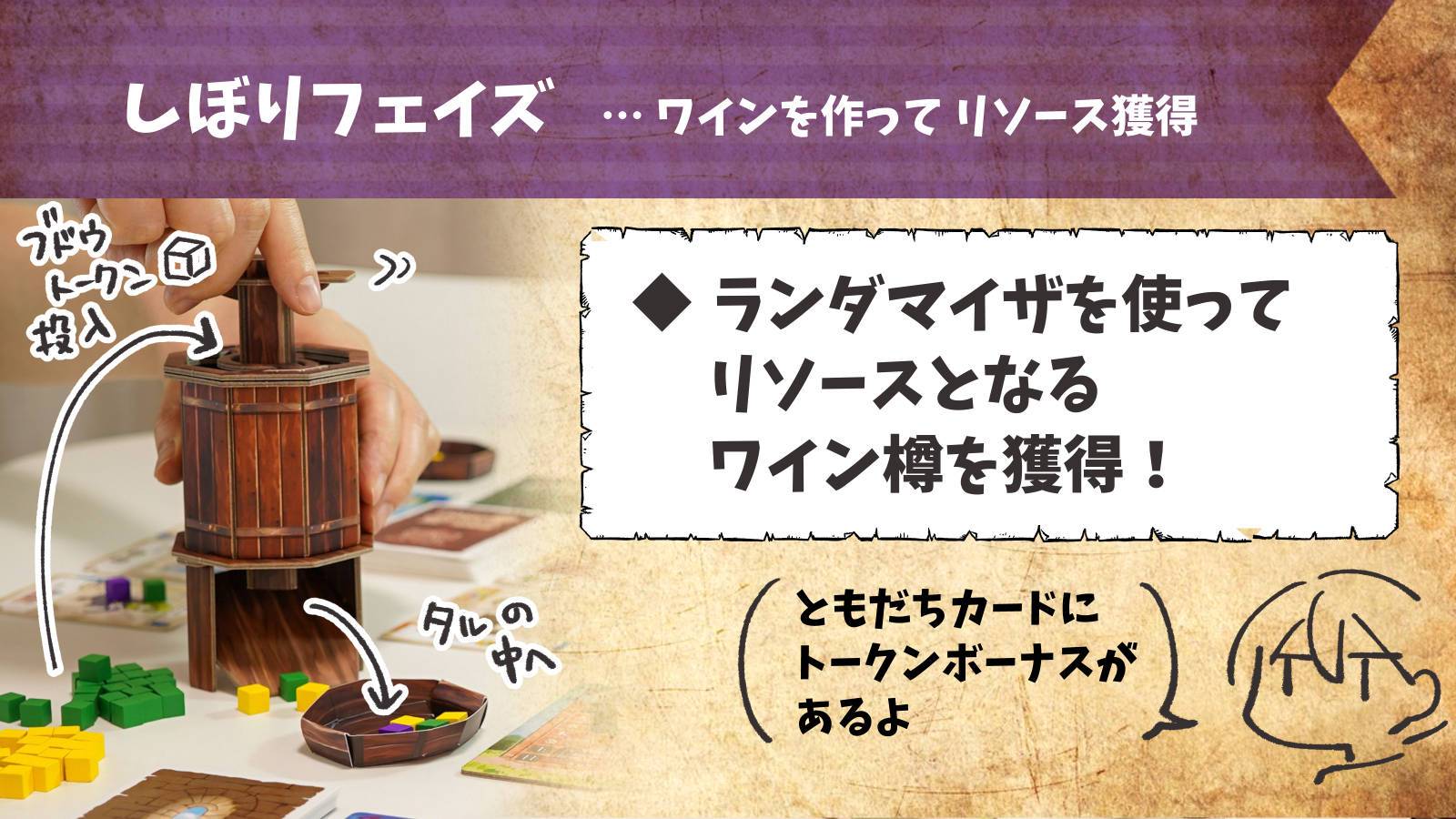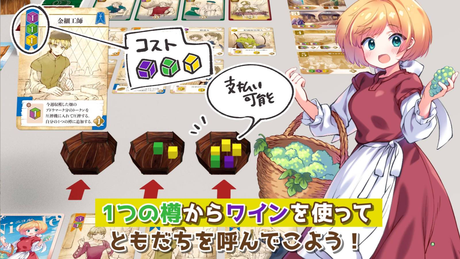 「ともだちカード」を集め、使いこなし、ワイン樽の管理を極めたプレイヤーが、勝利を手にします…!