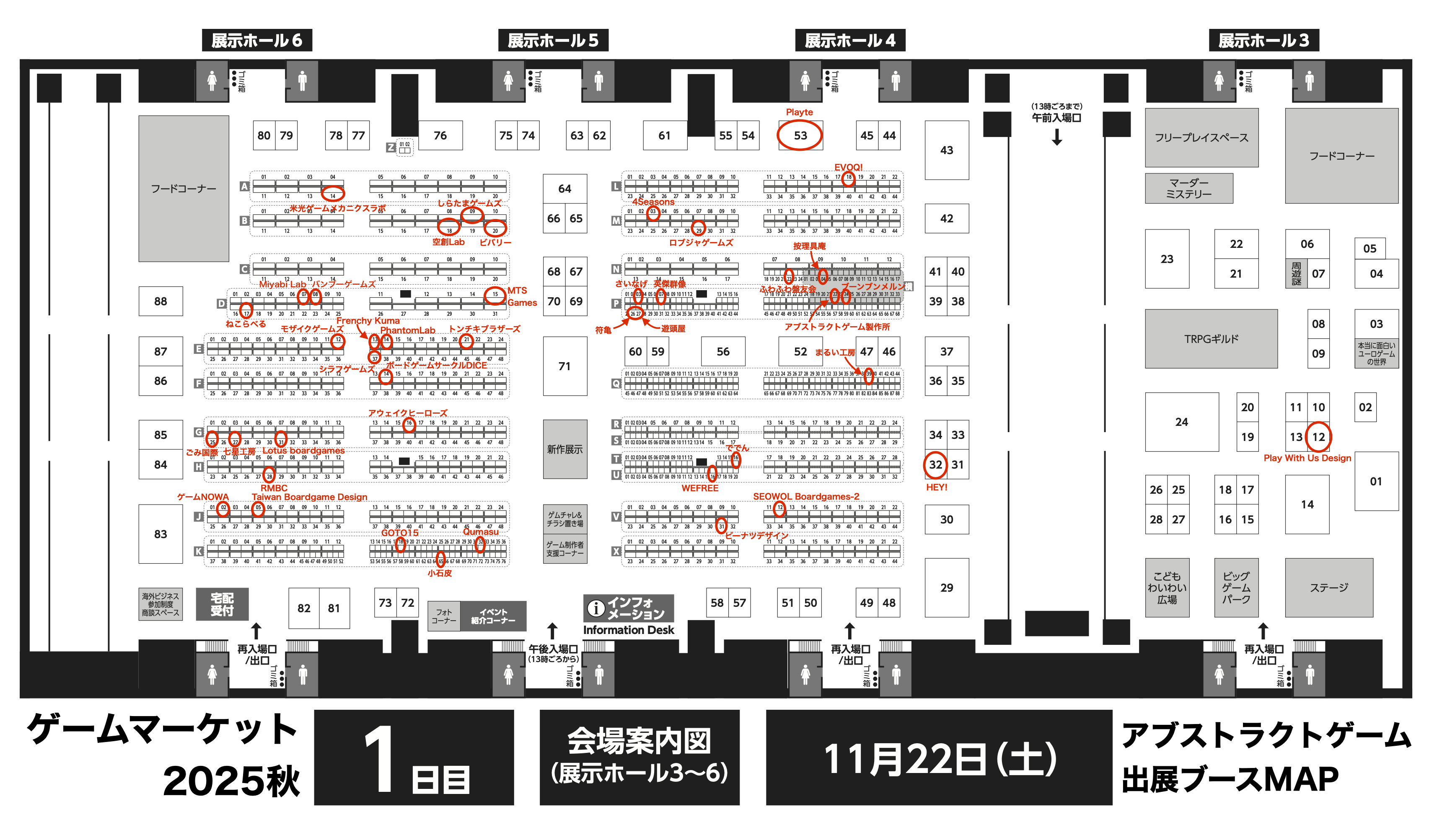 ということで、前回に引き続き、非公式で恐縮ですが、勝手にアブストラクトゲームのブースMAPを作ってみましたのでご活用ください。