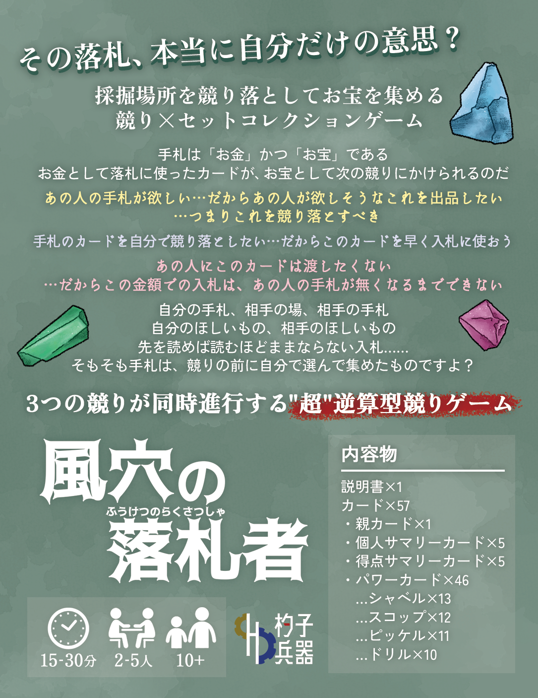 採掘場所を競り落としてお宝を集める、競り×セットコレクションゲーム