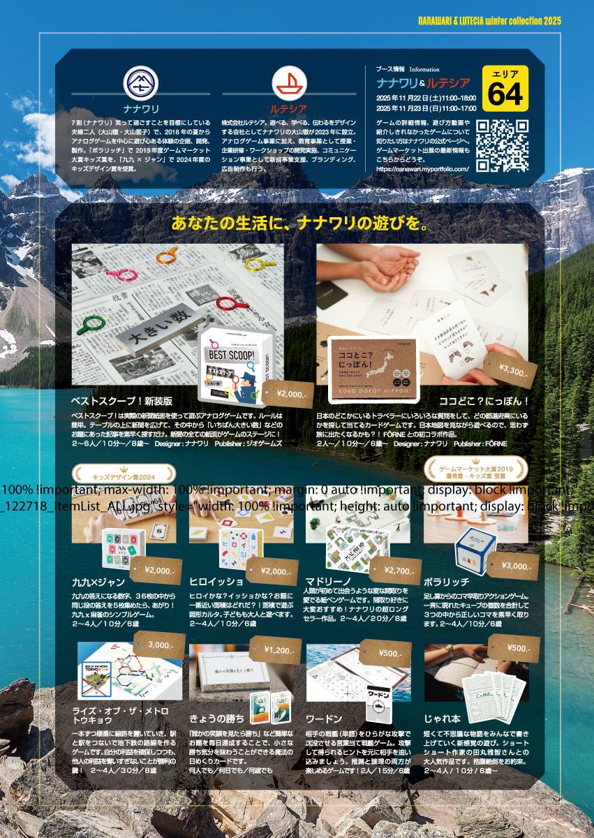 をはじめ、ナナワリ&ルテシア各作品をゲームマーケット特価でご提供します。