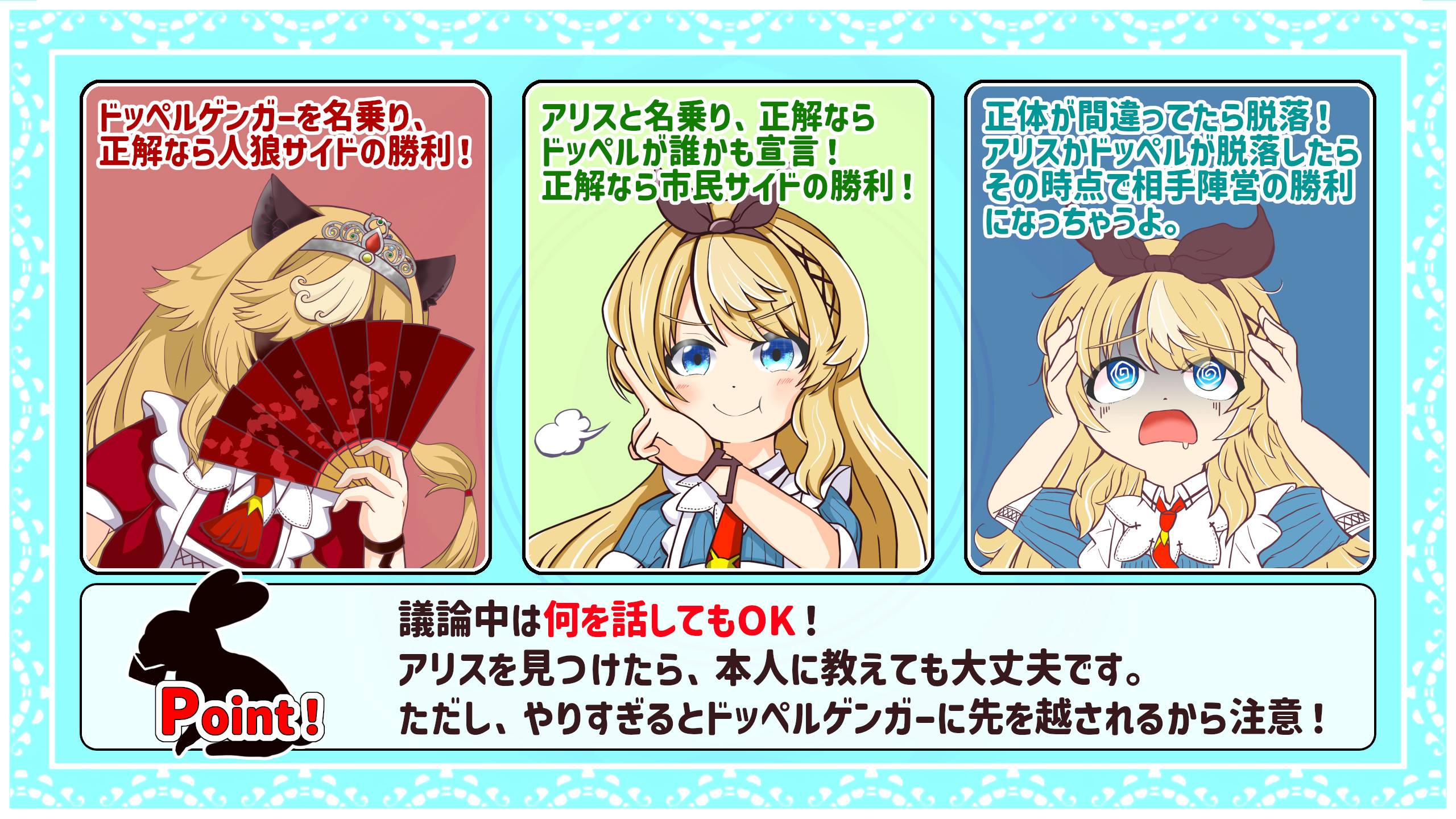 「童話人狼~アリス探しの一夜裁判~」の簡単ルール説明を作りました!