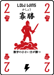 この例で出したカードをリード以外で出した場合即座に数字の強さが小さいほうが強くなります。