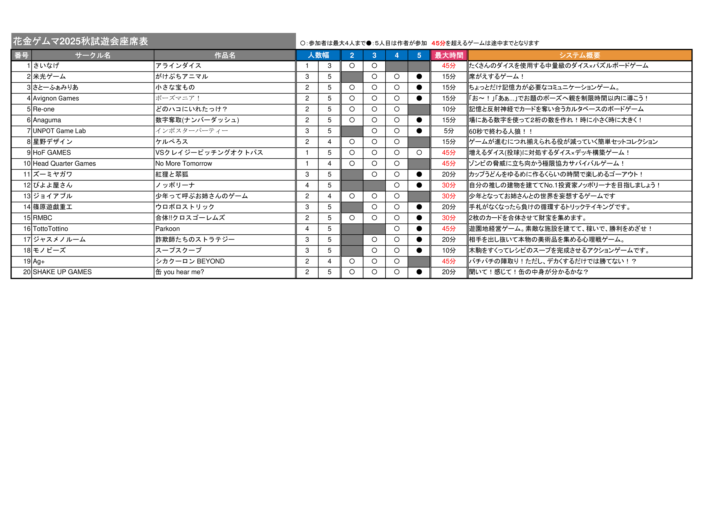 - 【無料】花金ゲムマ2025秋試遊会本日!【表参道10/31 19時〜】