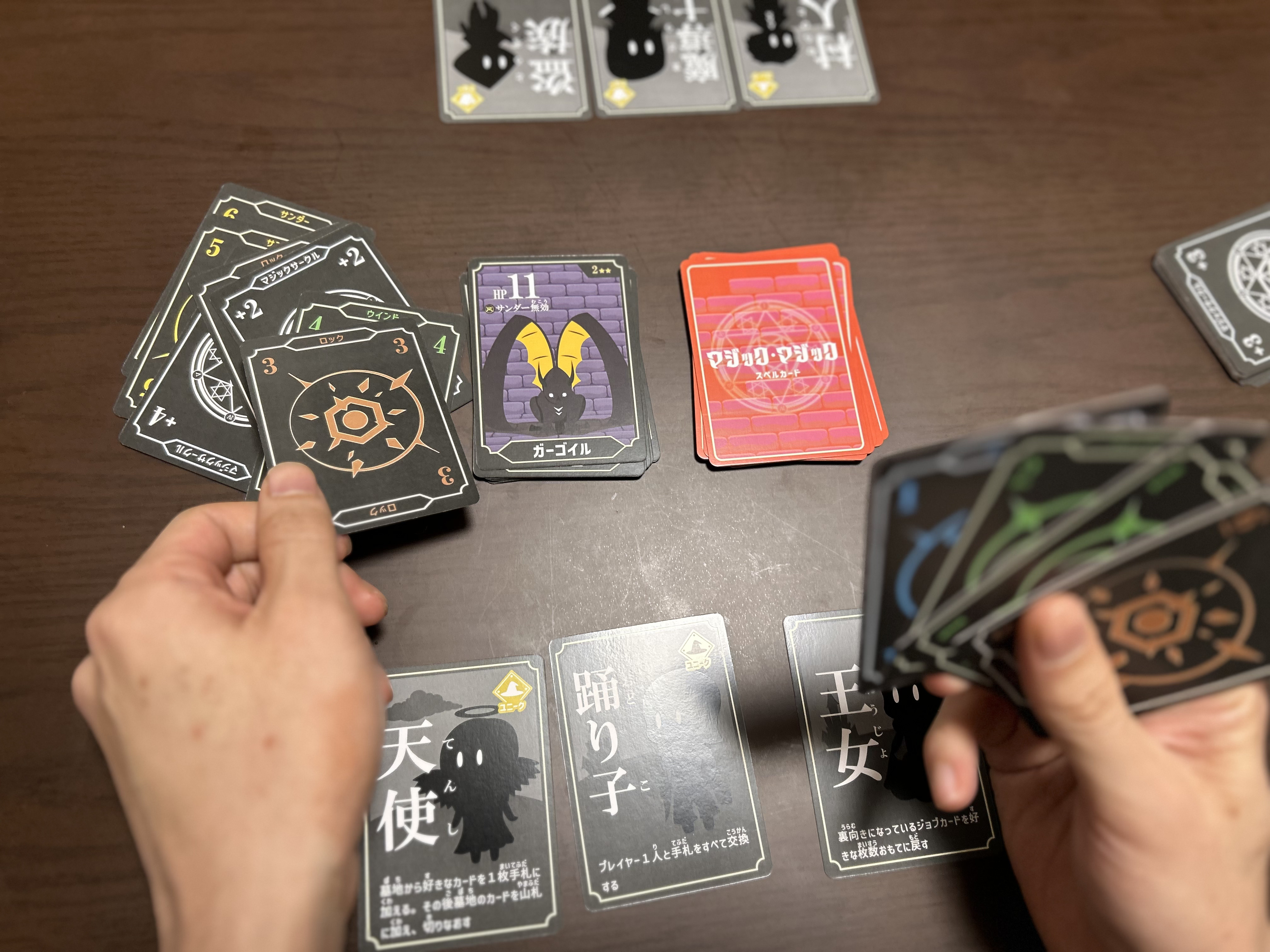各プレイヤーは3種類のスペルカードとジョブカードのスキルを駆使し、場のモンスターへ順番に攻撃をしていき、ダメージを与えて倒していきます。最終的に倒したモンスターが持つ星の数が1番多いプレイヤーが勝者となります。