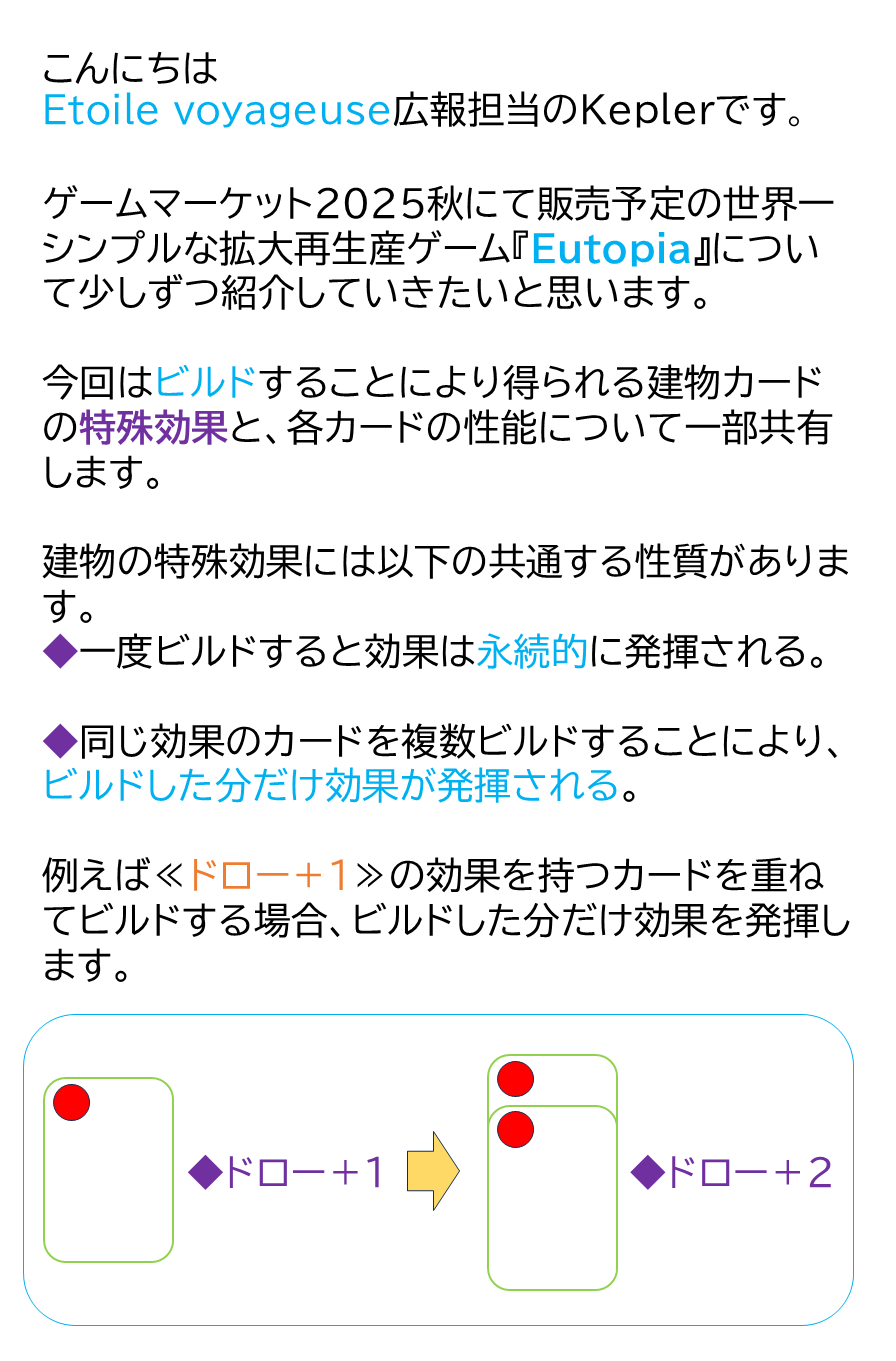 ゲームマーケット2025秋初出展! 世界一シンプルな拡大再生産『Eutopia』鋭意製作中! 拡大再生産のエッセンスを凝縮して極限まで削ぎ落としたシステムの美しさを、是非ご堪能いただければと思います!