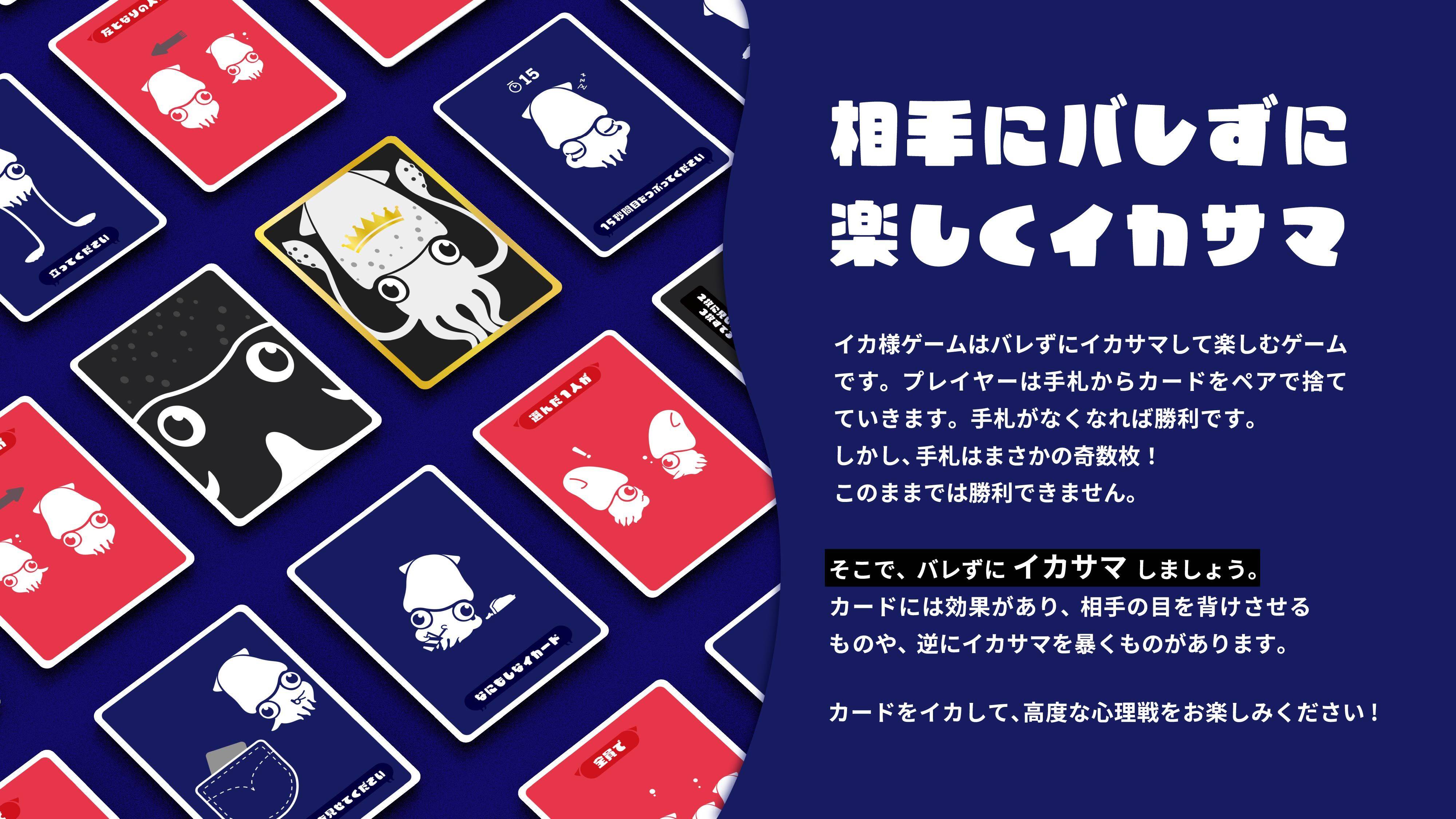 イカ様ゲームは手札のカードを順番に捨て、手札がなくなった人がアガリになるシンプルなパーティーゲーム!