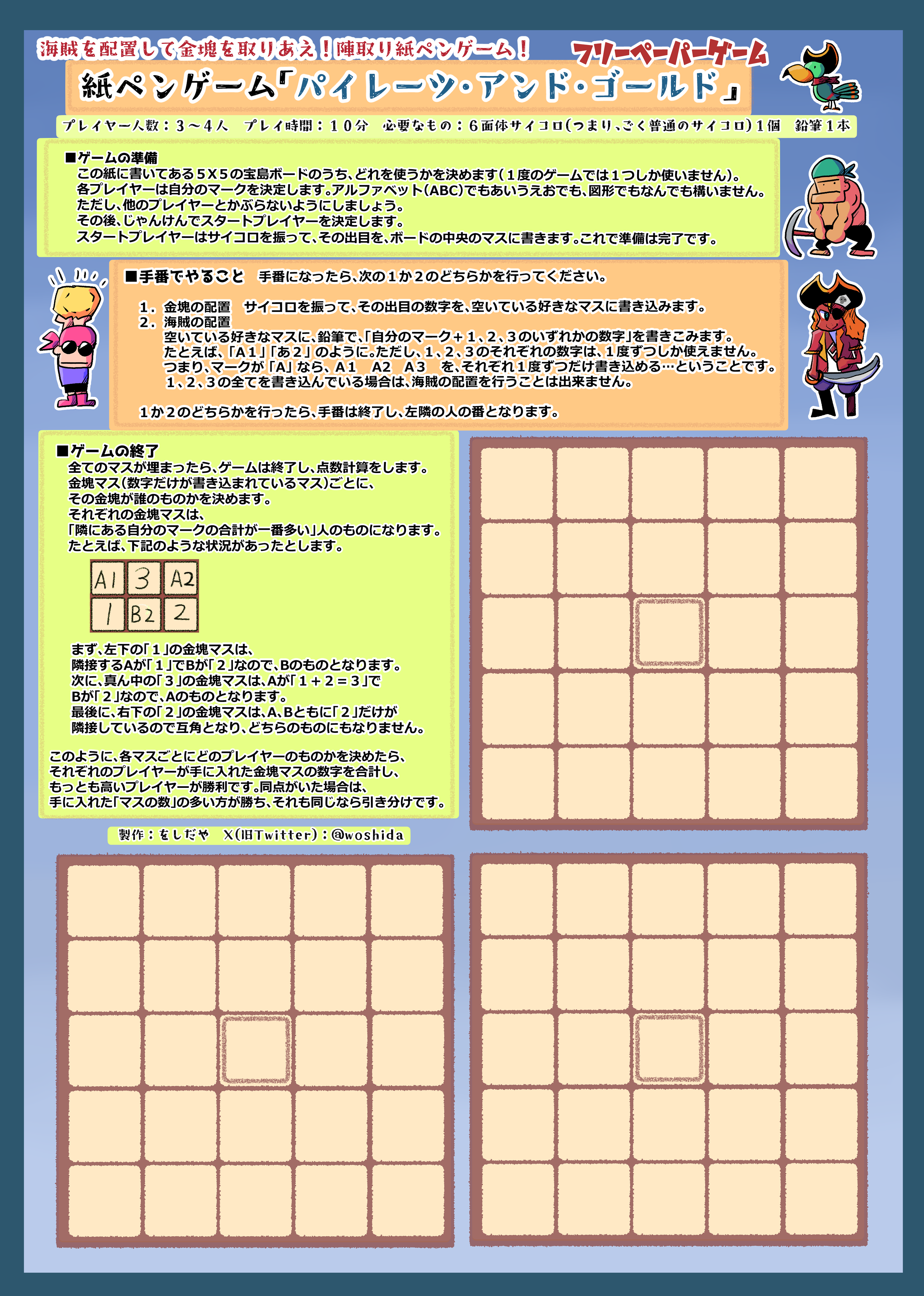 K68「をしだや」(両日参加)にて、フリーペーパーゲーム、「パイレーツ&ゴールド」の無料配布を行います。