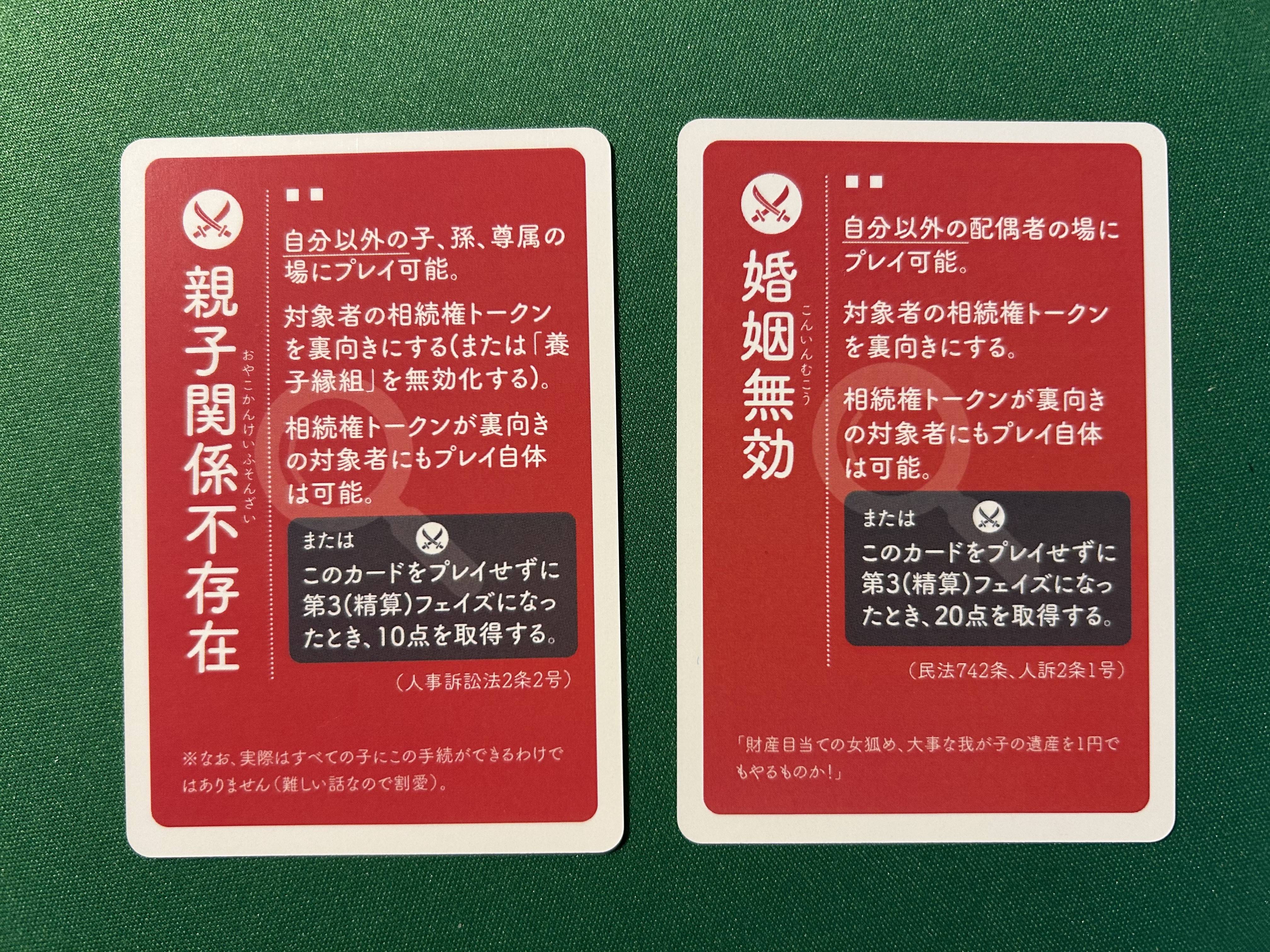 ちょっと真面目な話になりましたが、あくまでこのゲームは「お手軽にドロドロな遺産相続を楽しもう(しかも割と法律に基づいてるよ)」というテーマで制作したものです。実務との対比ということで踏み込んだ話をしましたが、ゲーム性とは全く関係のない話なので、是非ゲームの中でワイワイしながらドロドロしていただければ幸いです。