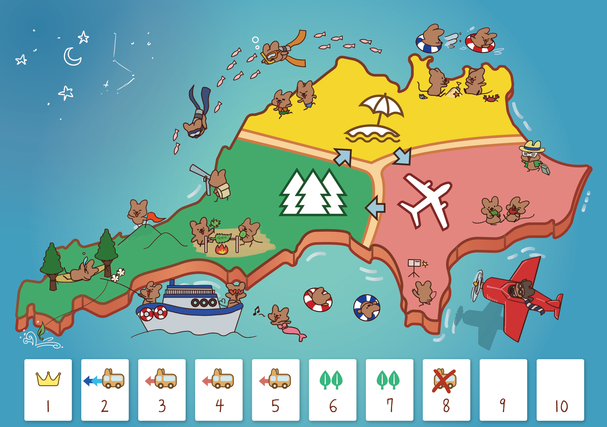 プレイヤーはクオッカとなり、バスに乗って島のあちこちを巡りながら、住処を手に入れるためにチケットを提出します。