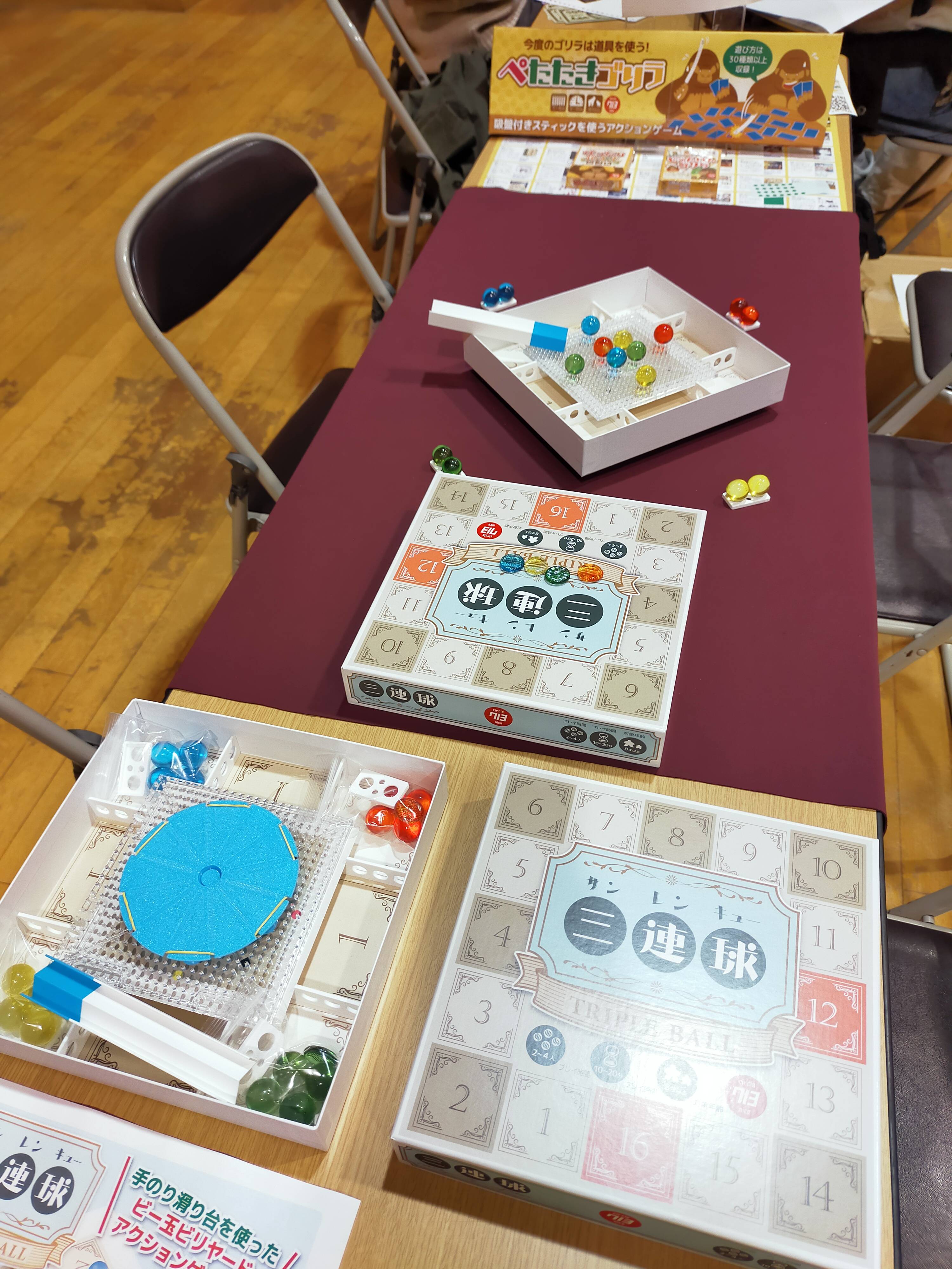 おおよそ30名程度の方に新作「三連球」を遊んでいただきました。