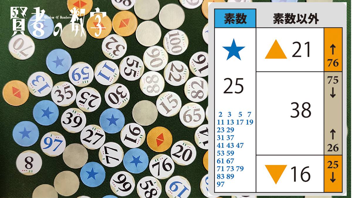 橙色(37枚)…素数以外の76以上 もしくは 25以下