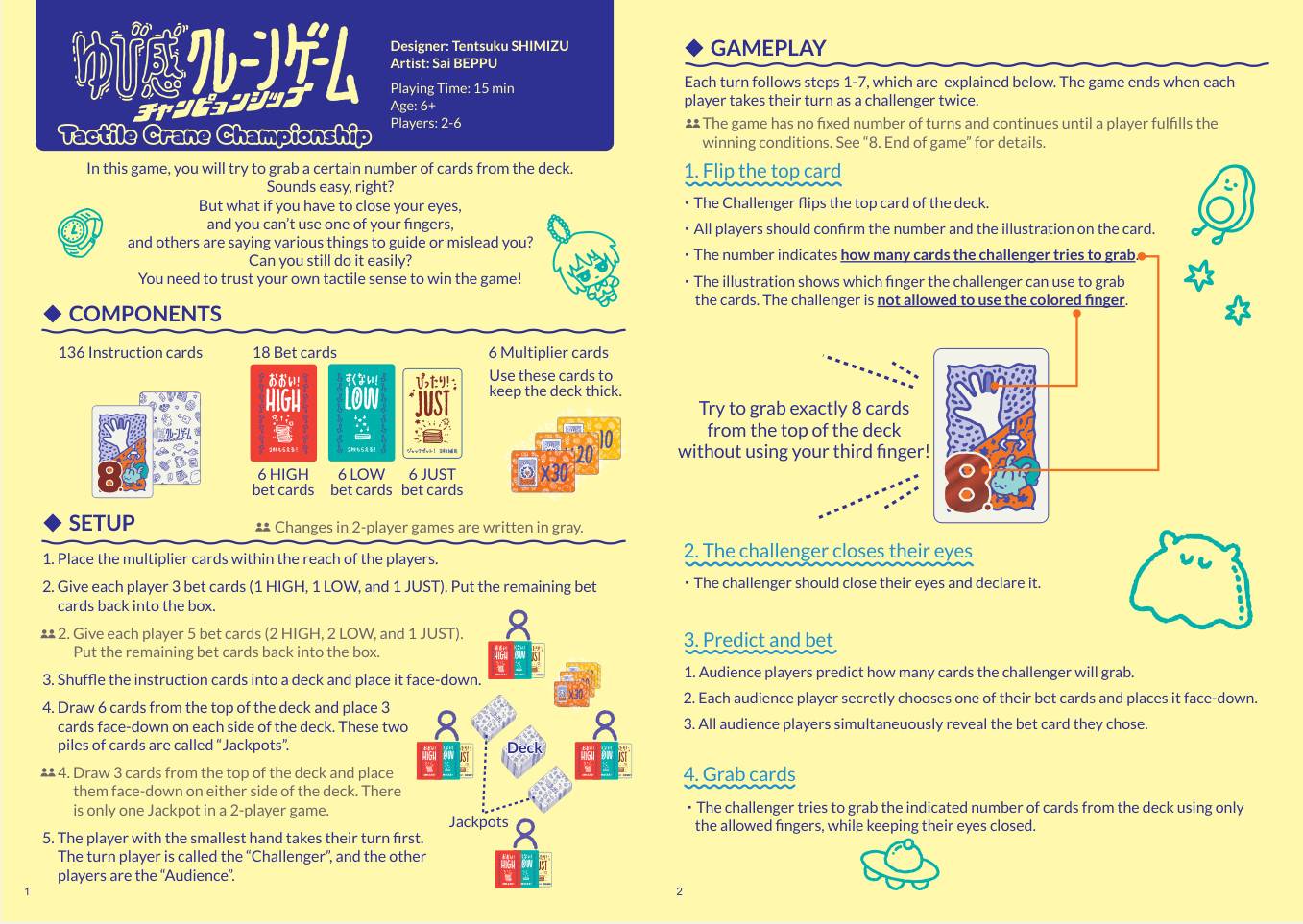 We are releasing the instruction manual for the "Tactile Crane Championship". It's a fun game where you test your “finger-sense” under the pressure of the audience's irresponsible cheers. While it's a simple game, those who want to know the rules in detail should definitely take a look.