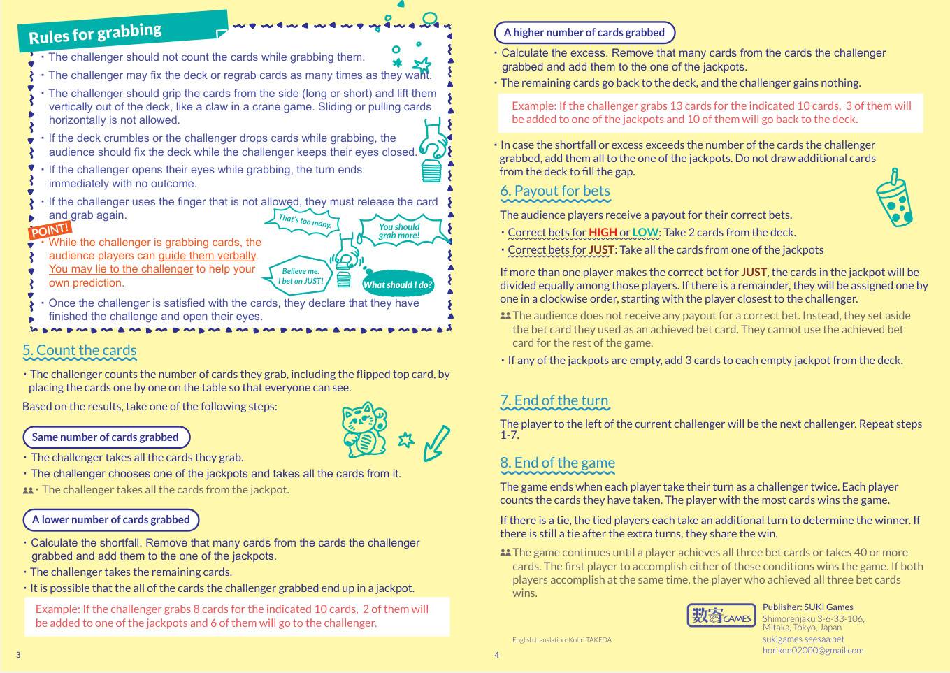 Well, it's a game with an extremely simple rule—just grab the specified number of cards. However, game enthusiasts might notice that the scoring system incorporates risk and reward, prompting a “Huh?” moment. If you think, “I thought it was just a gimmick game, but this is surprisingly deep?”, we encourage you to try it out for yourself.