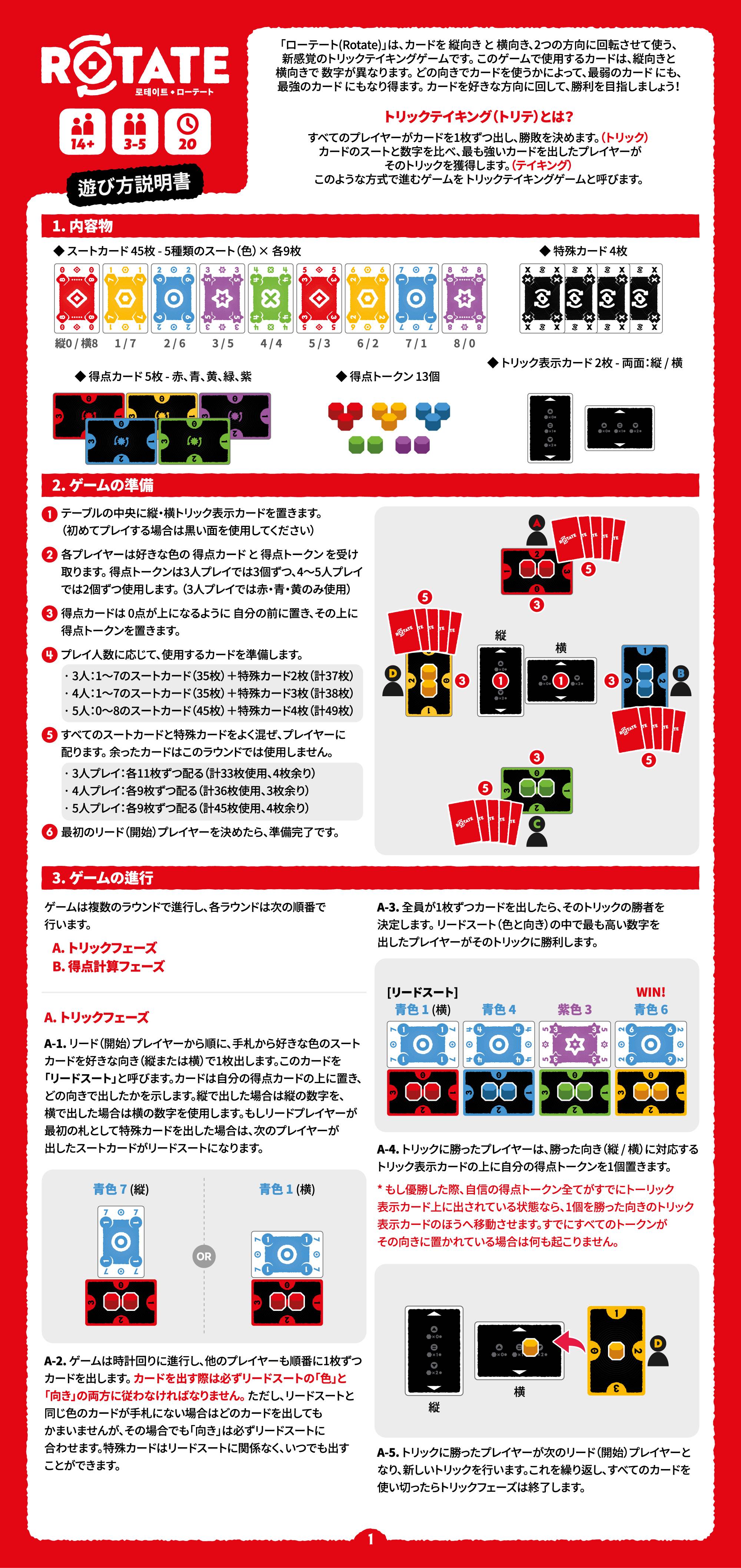 今回のゲムマ2025秋の新作ローテート(Rotate)の遊び方説明書をご紹介いたします!