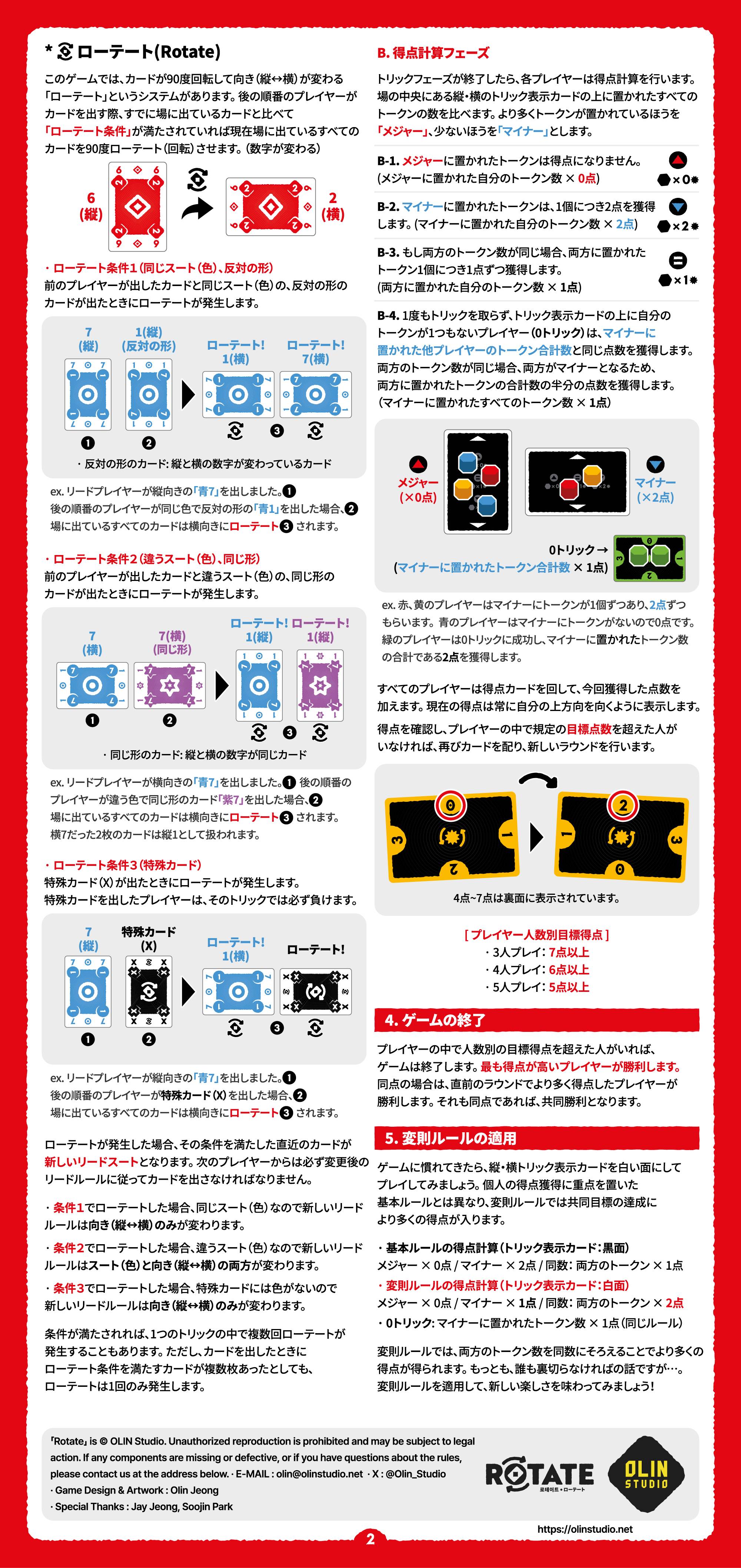 「ローテート」は、カードを回転(Rotate)させて数字を変えるトリックテイキングゲームです。