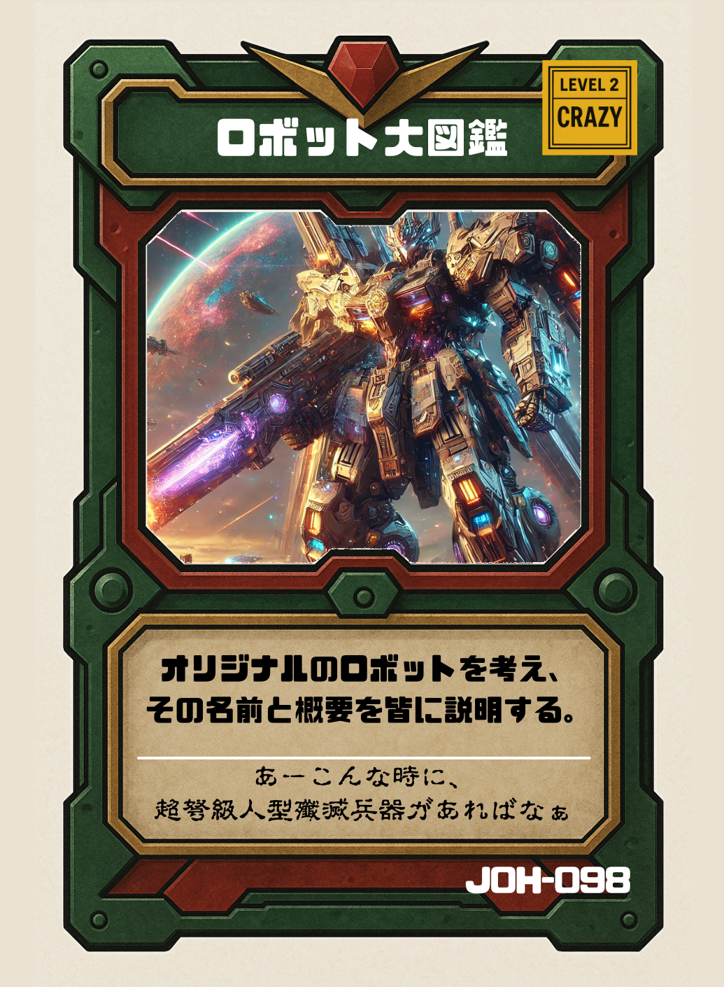 みなさんが普段妄想しているオリジナルSFロボット作品の設定を、ぜひ他のプレイヤーに聞かせてあげてください。