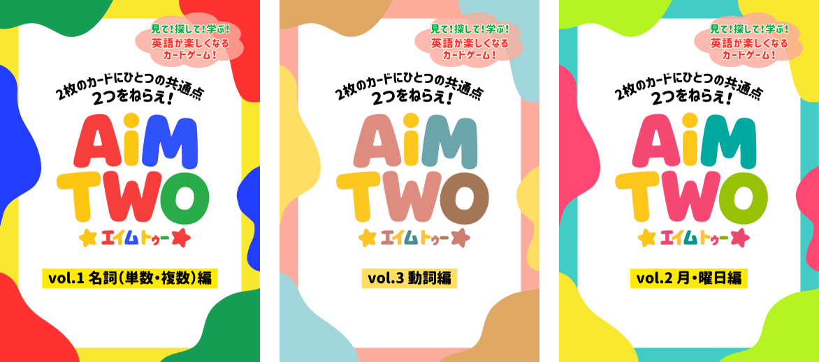 『学習ゲーム・インダストリーズ』は、子どもから大人まで楽しく学べる知育カードゲームを企画・開発・販売するブランドです。 英語のルールや語彙が、遊びの中で自然に身につく作品を制作しています。 ゲームマーケットに参加するのは3回目です。毎回新作を持ち込んでいます! 当日は試遊OK。英語が苦手でも大歓迎です! 新作! 2025秋 『AiM TWO(えいむ・とぅー)』 遊びながら英単語を覚えられる学習カードゲーム 2枚のカードに共通した単語を探すシンプルなルール 子どもから大人まで、誰でも楽しめます! Vol.1 名詞(単数・複数)編 Vol.2 名詞(月・曜日)編 Vol.3 不規則動詞編 今後もシリーズ化して続編を作る予定です 2025春 『VerbMon(バブモン)』 動詞の活用を遊びながら覚えらえる麻雀のようなカードゲームです。 動詞の原形・過去形・過去分詞形を楽しく覚えちゃおう! 動詞によって強さがあるのがまた駆け引きに繋がり面白いです。 2024秋 『ABCアッセンブル』 文法・品詞・修飾を遊びながら学べるゲームです。UNOのようなゲームです。 英語が分からなくても、色で認識して修飾ルールを学べます。