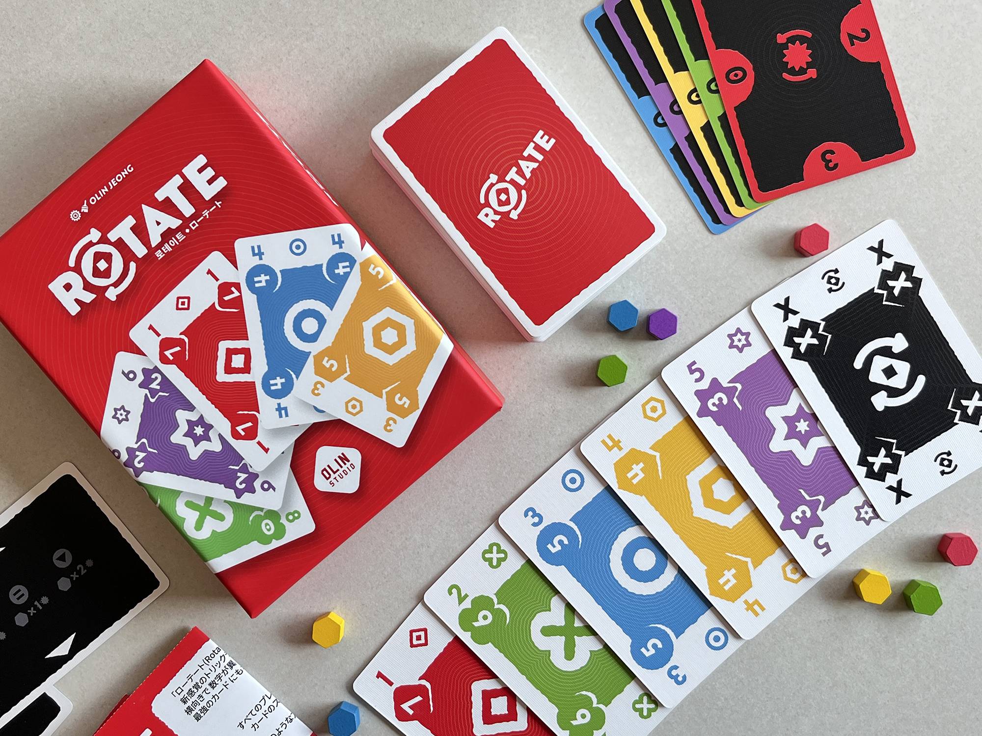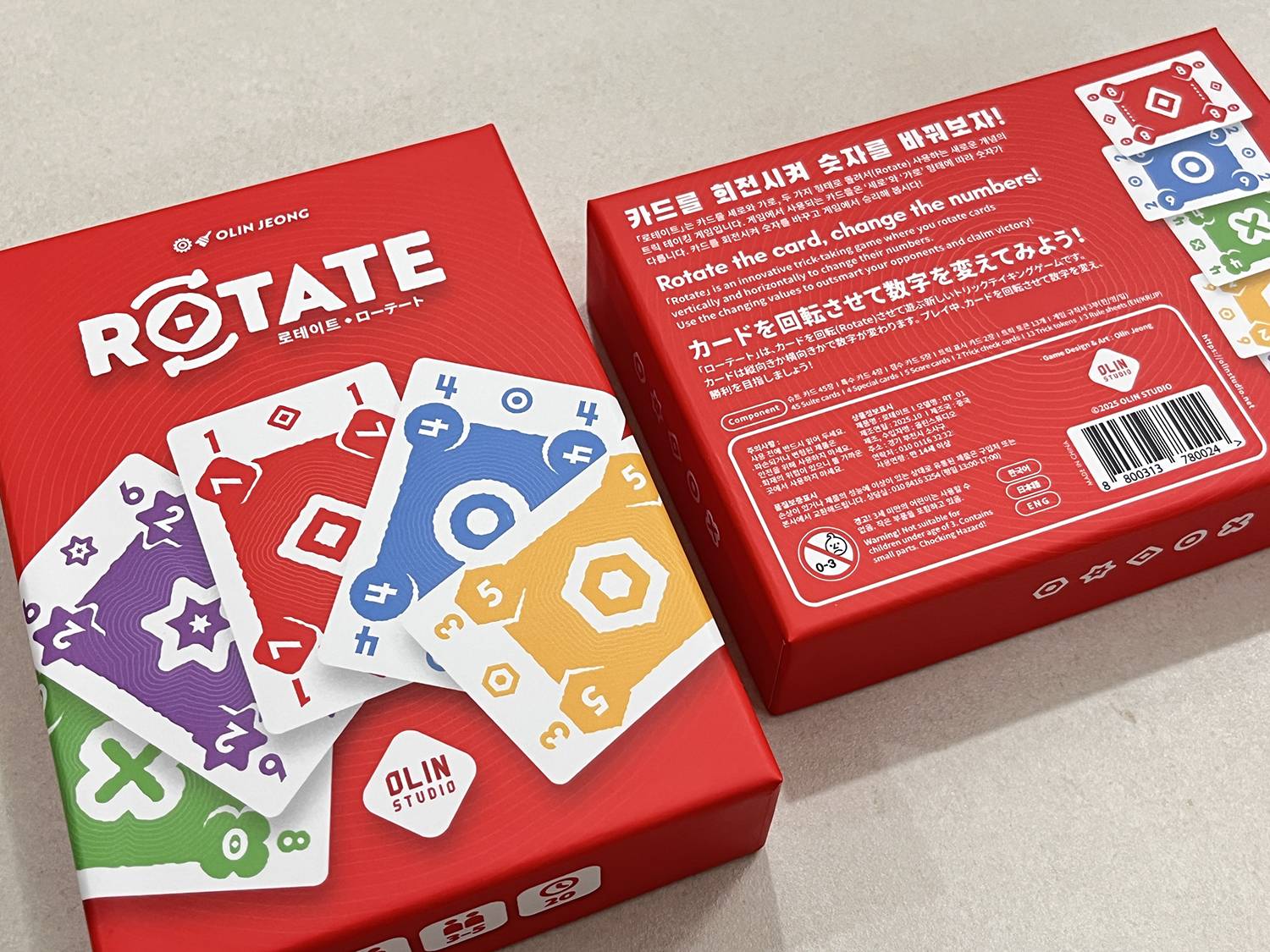 ゲムマ2025秋の新作<ローテート(Rotate)>の箱のデザインをご紹介します。