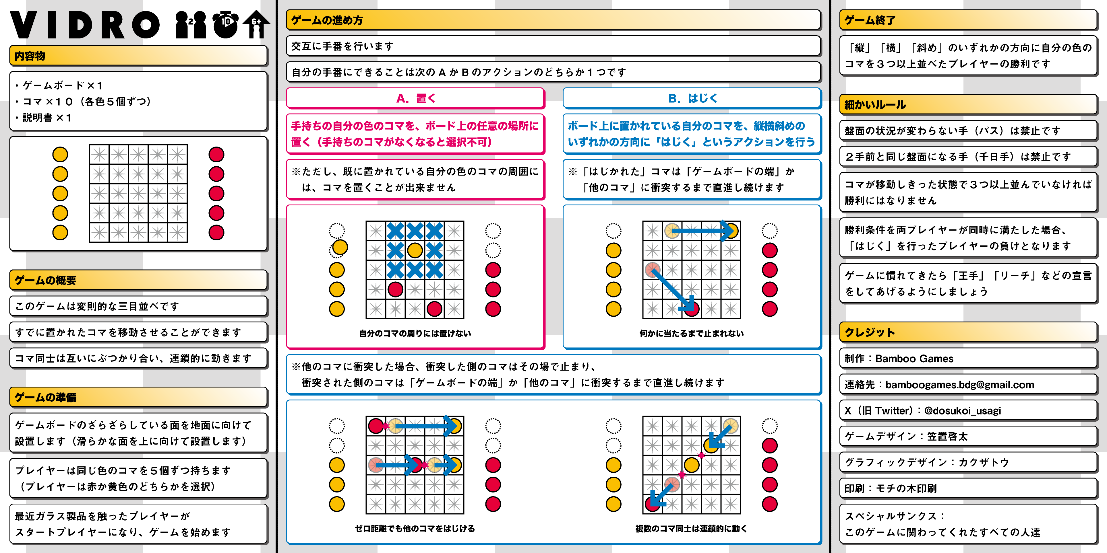 Bamboo Games(バンブーゲームズ)は「竹のように成長して面白いゲームを作る」をモットーに活動する個人サークルです! ボドゲ好きの大学生が1人で運営しています。