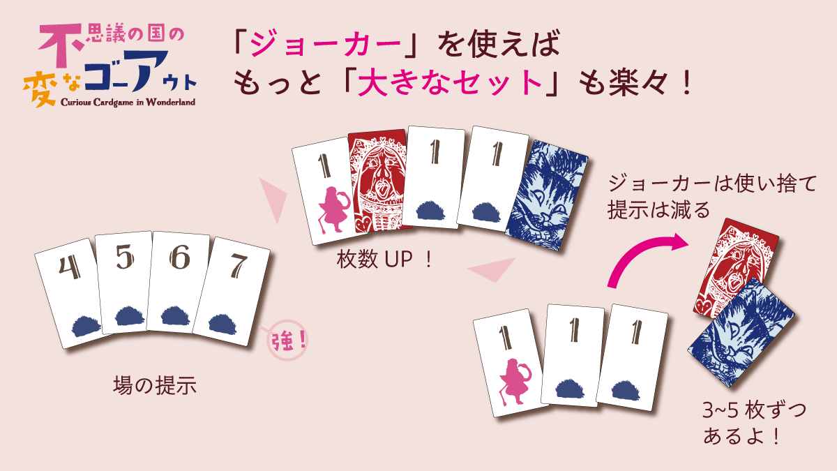 ●アナログゲーム専門サイト「GamersFamily.jp」の出展部門です。 【25秋・新作01】『フリップエンジェル』:表は天使、裏は堕天使のカードを場に並べながら6枚集めて得点コンボを狙うタブロービルデング。 【25秋・新作02】『不思議の国の変なゴーアウト』:出した手札は勝利点だからたくさん出したいけれど早上がり順ボーナスも欲しいゴーアウト。 【25春・新作】『国会劇場』:マストフォローなのに数値勝ち!? 弱い数字も重ねて強数字を超えちゃう!? どれにも化けるスート!? 魑魅魍魎集う「国会」をトリックテイキングで楽しむ!