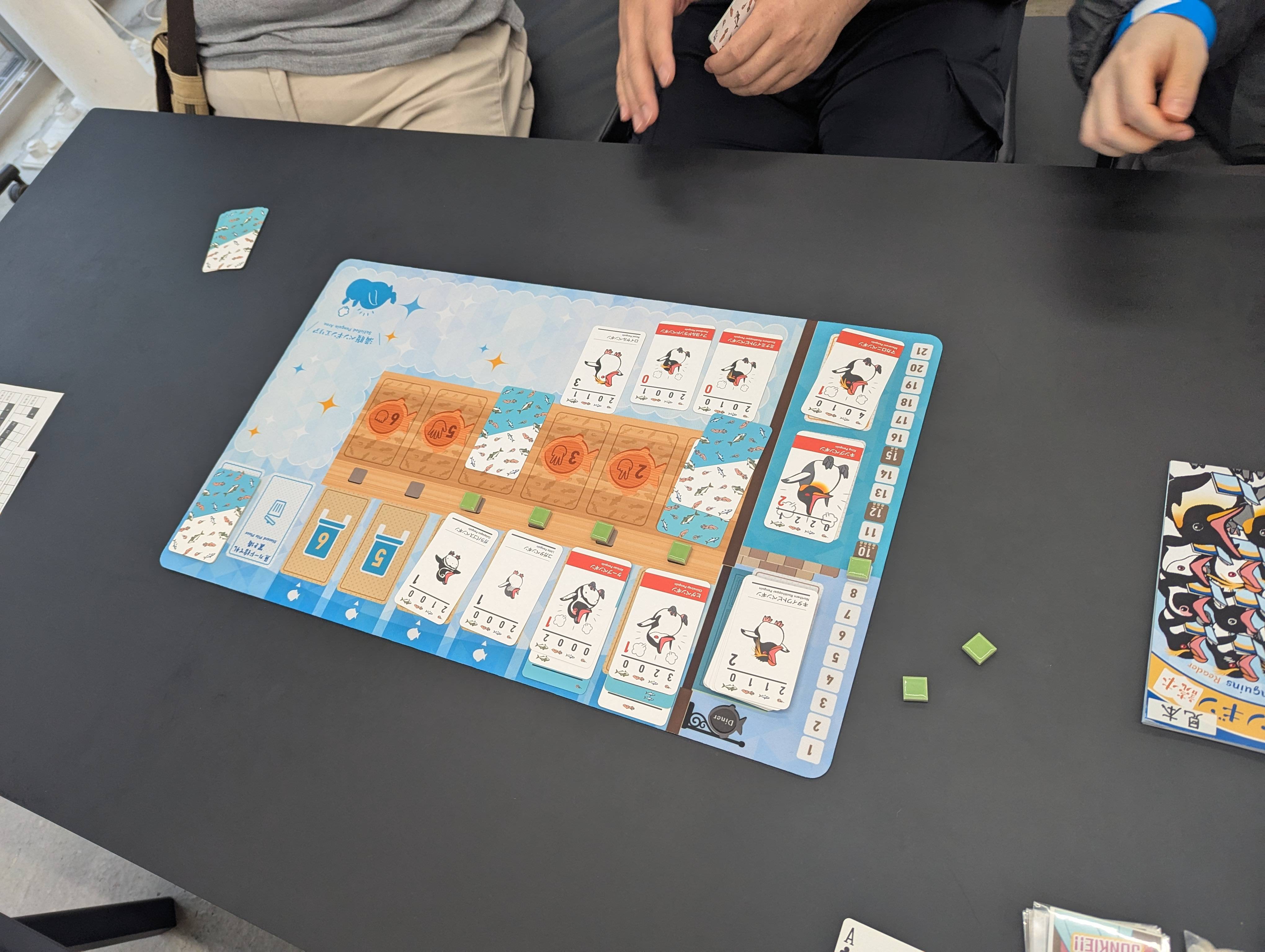 今回も前回に続いて1卓販売+1卓試遊になります。 ゲームマーケット2025春で好評を博した「はらぺこペンギン」とその周辺グッズを中心に、あと間に合えば新作も出したいと思っています。 気になってたゲームのお試しがしたい方は是非お立ち寄りください。