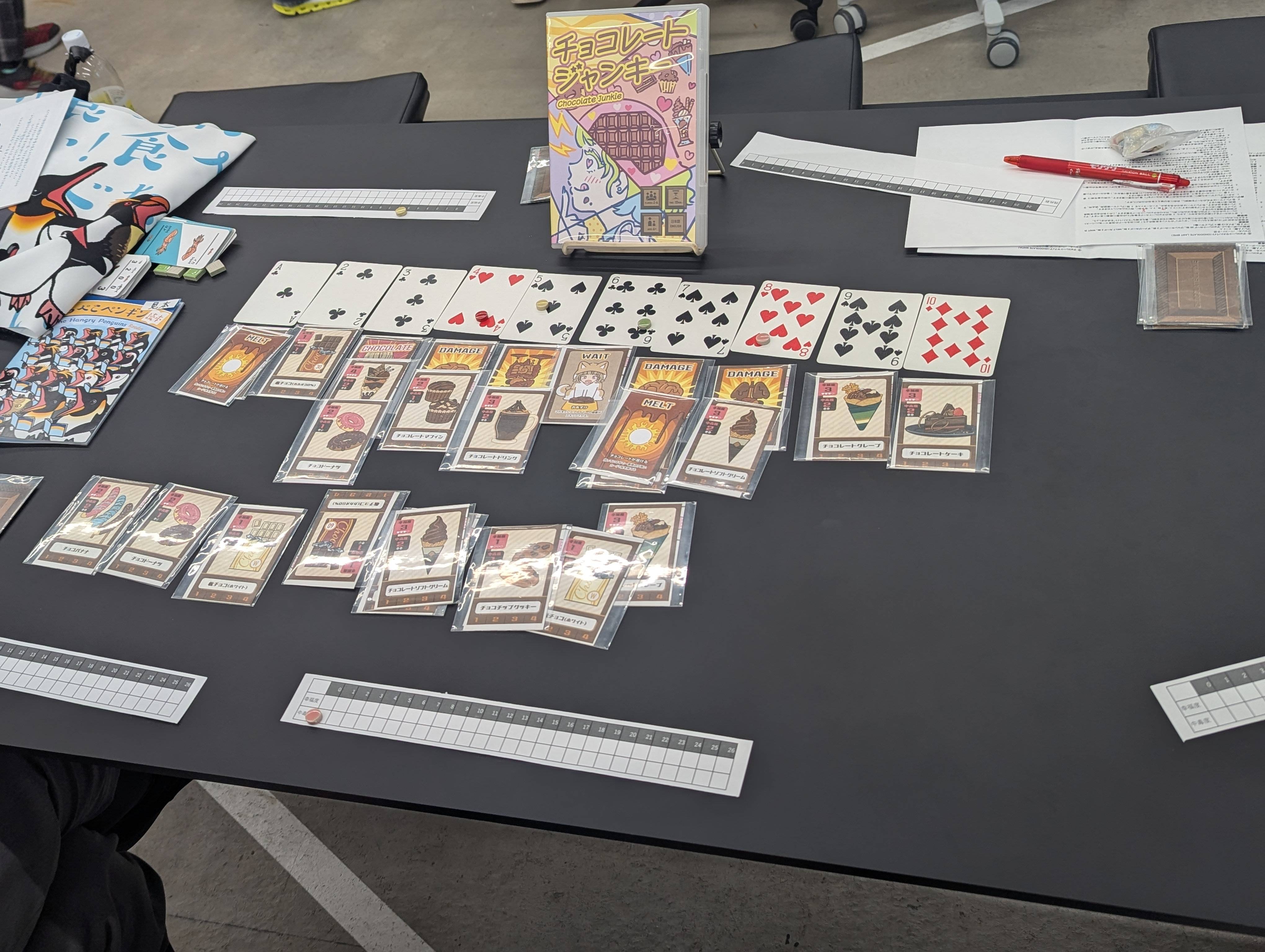 右が『チョコレートジャンキー』。まだ完成前のパッケージとカードだけですが、一応遊べる状態まで来ました。
