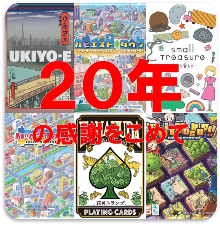 上記のうち、1つでもご購入いただけたら、さとーとしきゲムマ出展20周年記念オリジナルトランプをプレゼントします。