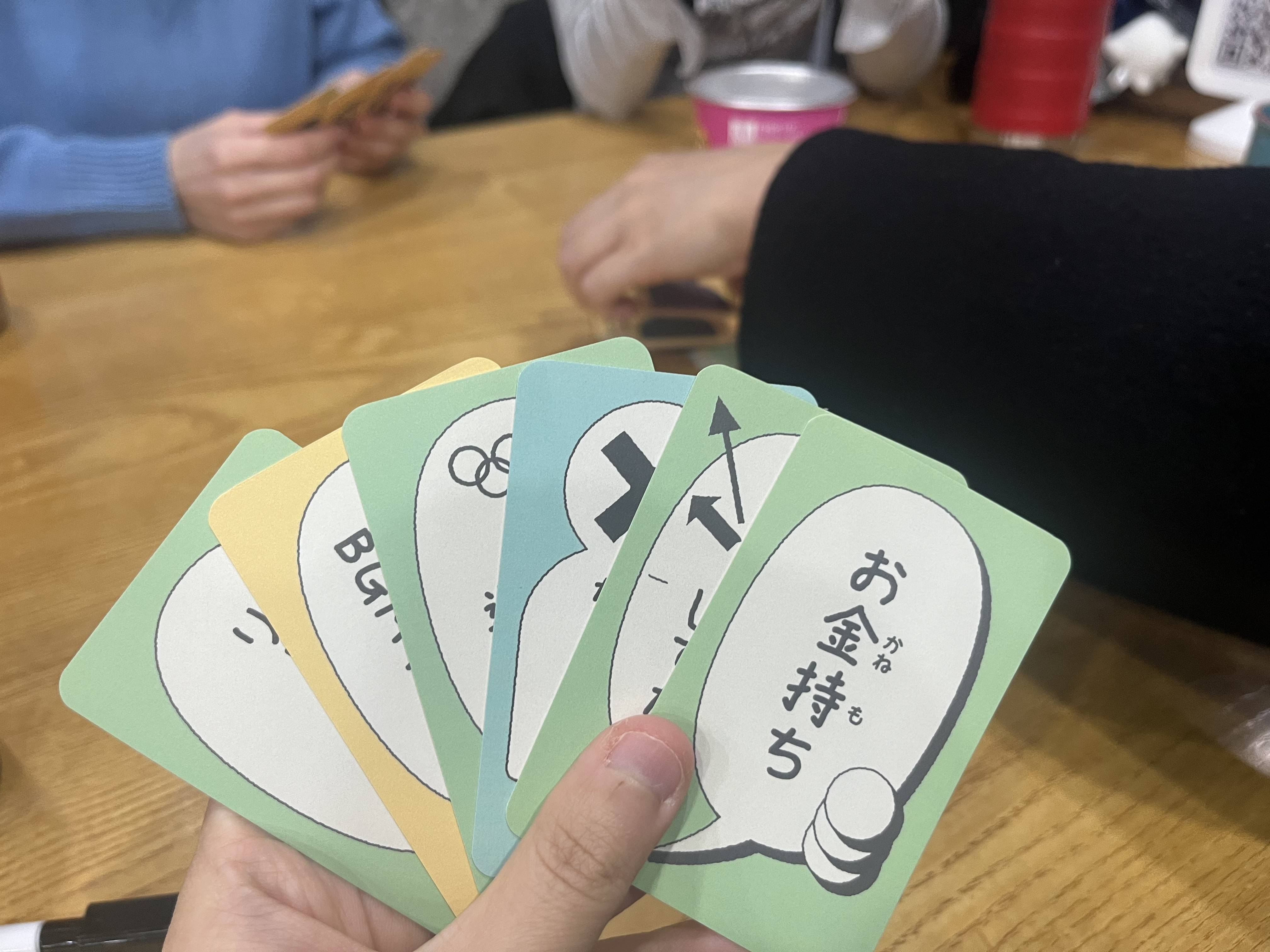 その後、本人が考えたキャラクターのヒントになるような特徴が書かれているカードを1枚ずつ置きます。