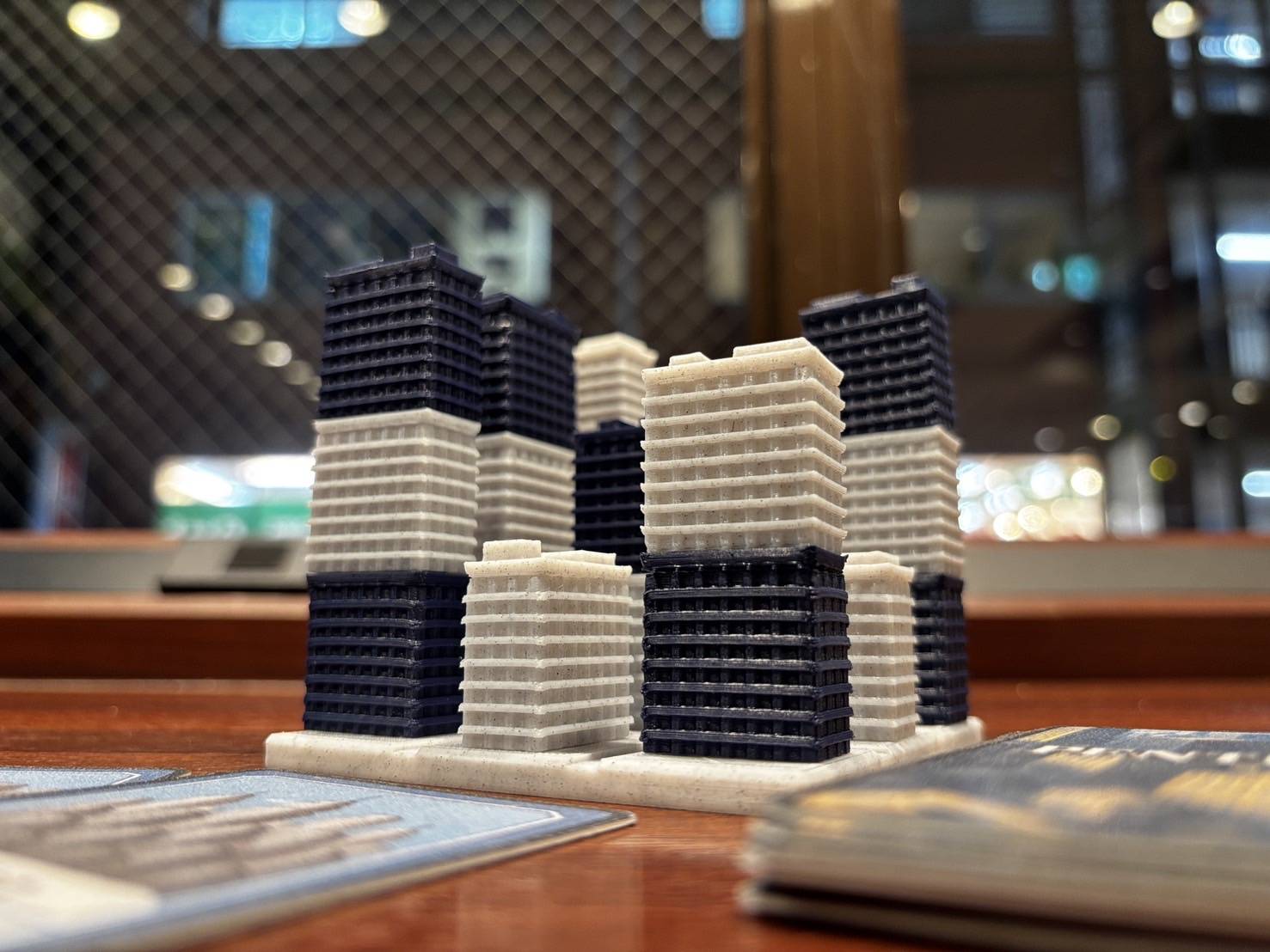このゲームは、 盤面にビルコマを交互に置いていく2人プレイ用の都市開拓型ゲームです。