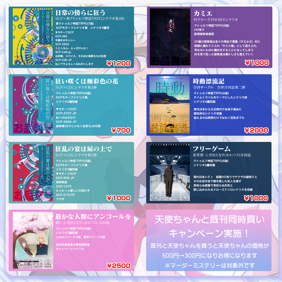 既刊のCOCシナリオ集と天使ちゃんを一緒に買うとお得になります!