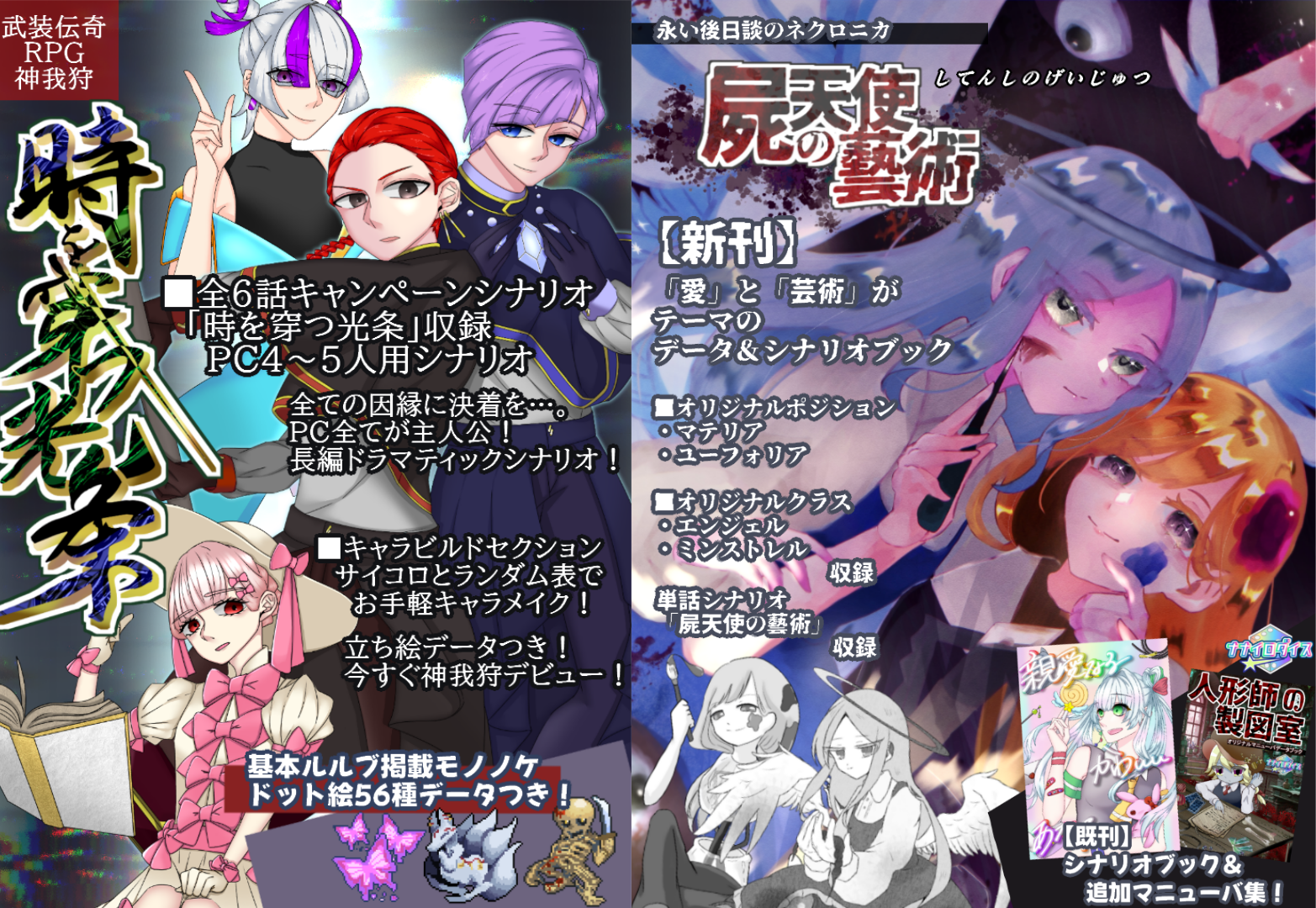 2024年10月設立! TRPGシナリオ・サプリなどの頒布サークルです🌈🎲 現在の取り扱いシステムはシノビガミ、ネクロニカ、神我狩です!(今後はもっと増やしたい) メンバー全員経験システム30over!いろんなシステムの良いところを、他のシステムにも導入したい! シナリオだけでなく、追加データやランダム表、クイックスタートなどさまざまなデータを頒布しております! 当サークル頒布物は配信・動画化歓迎✨✨