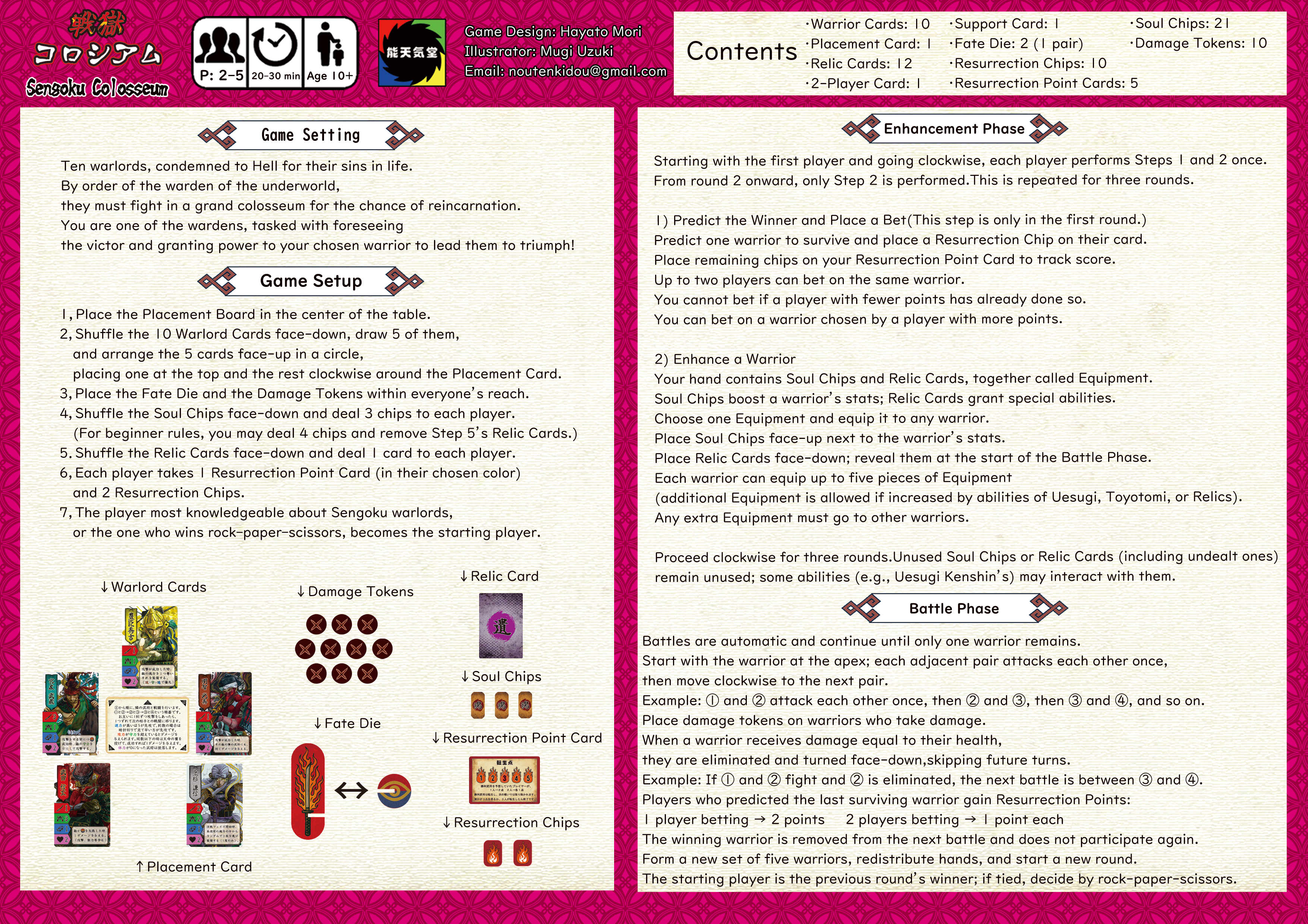- English Rulebook「SENGOKU COLOSSEUM」Bet & Character Enhancement Build