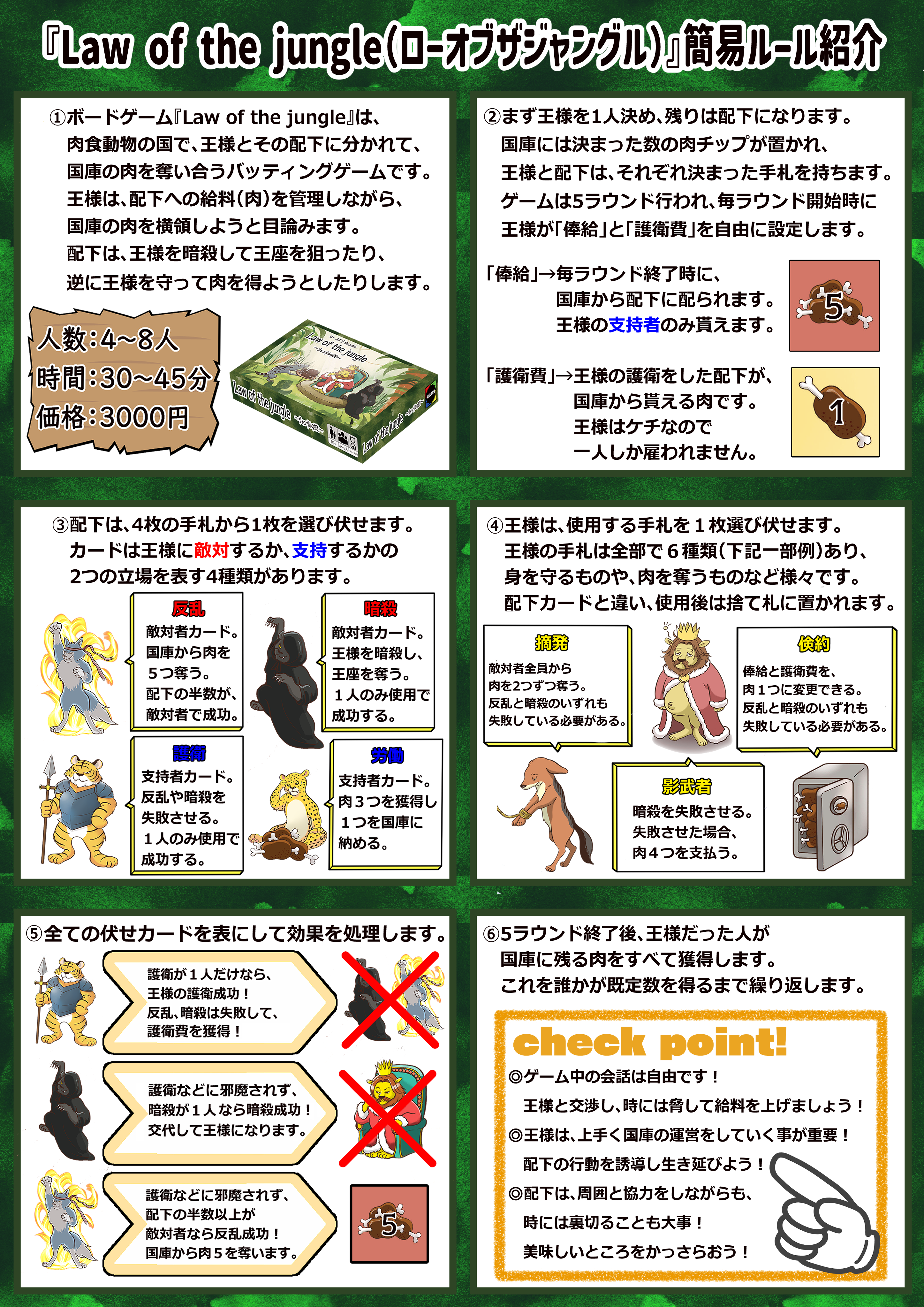 カードは使い切りなので、周りのプレイヤーが脱落していく中で、どういう順番にカードを使えば、生き残ってポイントを稼げるか、シンプルなルールで本格的な読み合いが楽しめる良作です