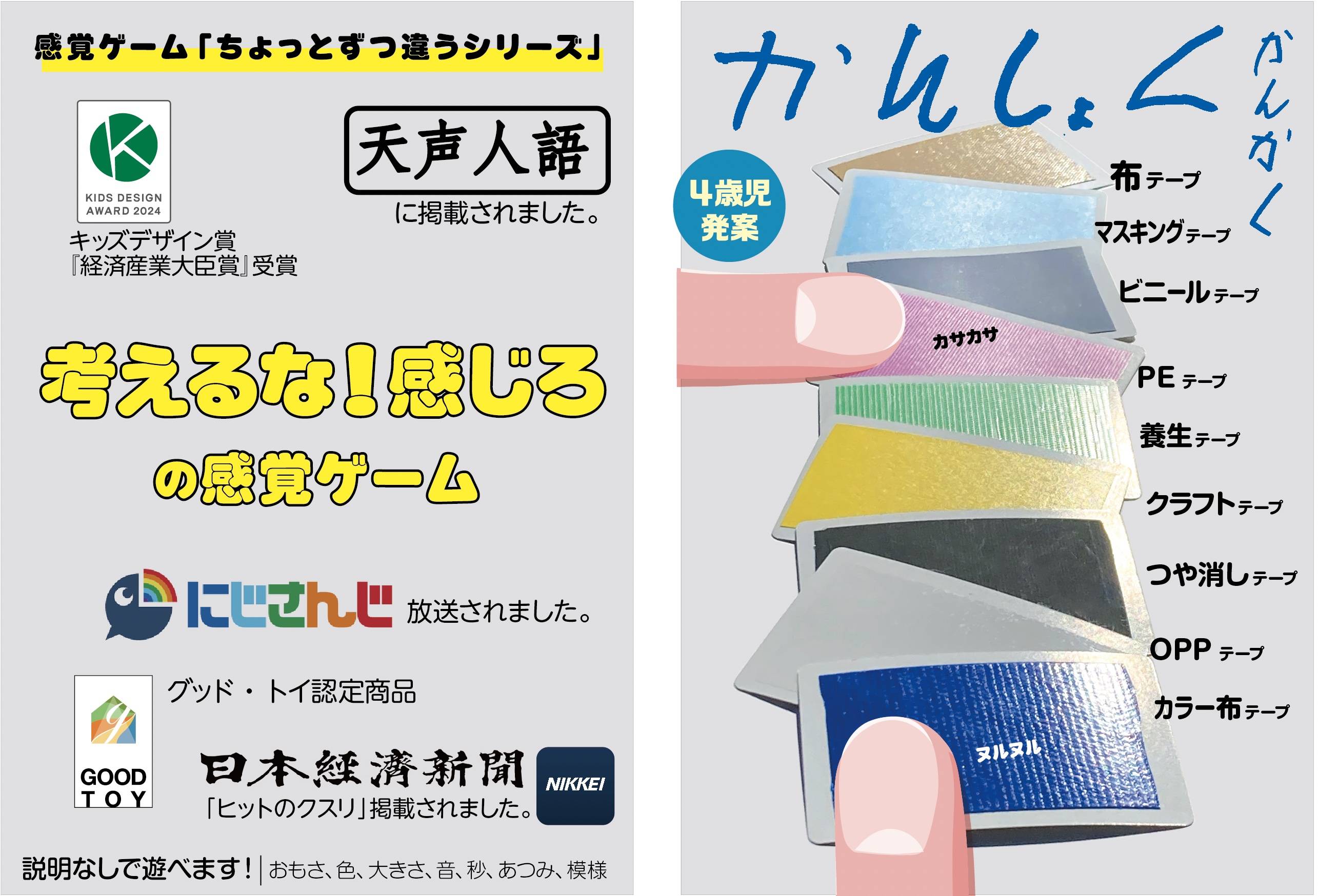 感覚ゲームを増殖中。2025秋は、カードの感触を見抜く「感触感覚」を発売。 準新作の「おもさ感覚」もよろしくお願いします。 ・2025年11月、にじさんじさんにて放送。「耳と手感覚」と「秒感覚」 ・2025年10月、朝日新聞「天声人語」掲載の「耳と手感覚」もあります!小箱の中の個数を当てるゲームです。 ・2025年9月 日経新聞「ヒットのクスリ」掲載のシリーズ商品。 2024年、9月に第18回キッズデザイン賞「経済産業大臣賞」受賞「微妙な違いを視覚や触覚で見抜く『感覚ゲーム』」、グッド・トイ2024選定「1ミリ感覚」、グッド・トイ2023選定「指感覚2」 ・記憶や戦略、知識に頼らず、感覚に集中するゲームなので、誰でもすぐに楽しめます。 感覚ゲームシリーズ『指感覚2』『1ミリ感覚』『1ミリ感覚キューブ』『いろ感覚2』『耳と手感覚新装版』『トランチョ』『秒感覚』 2025春は1ミリ感覚jに新しい遊び方「感触と目測」が加わります。既に購入済みの方には説明書をお渡しします。ウェブサイトにもアップ予定。