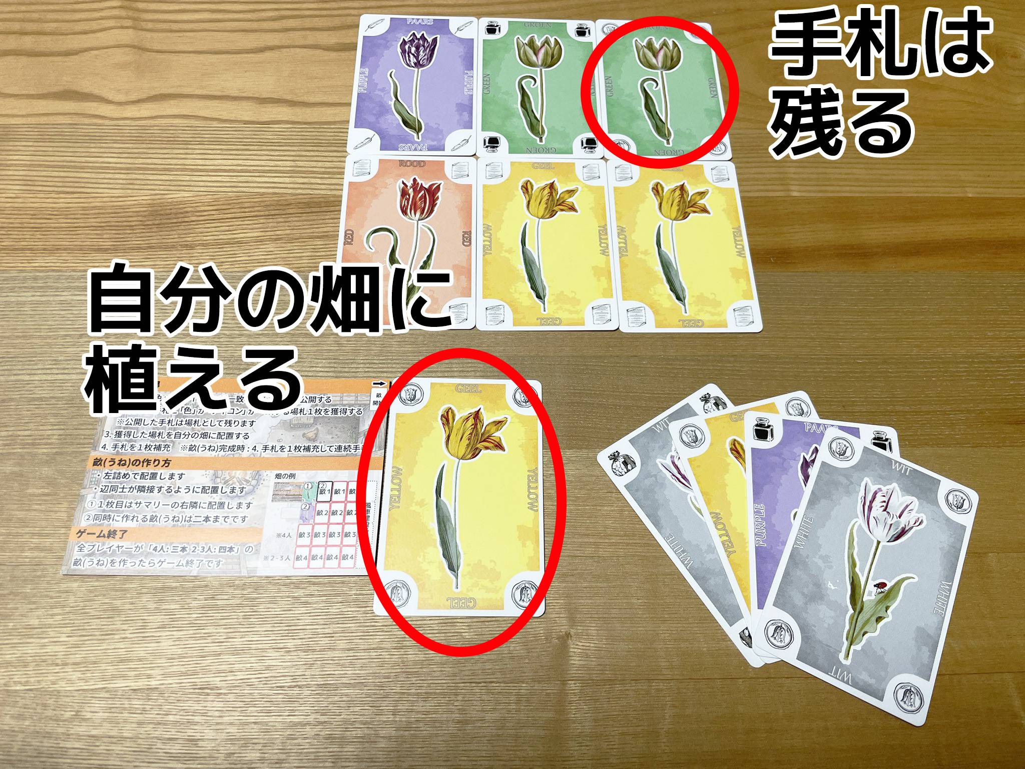 3.配置:場札を取り、畑に植える。手札は場に残す
