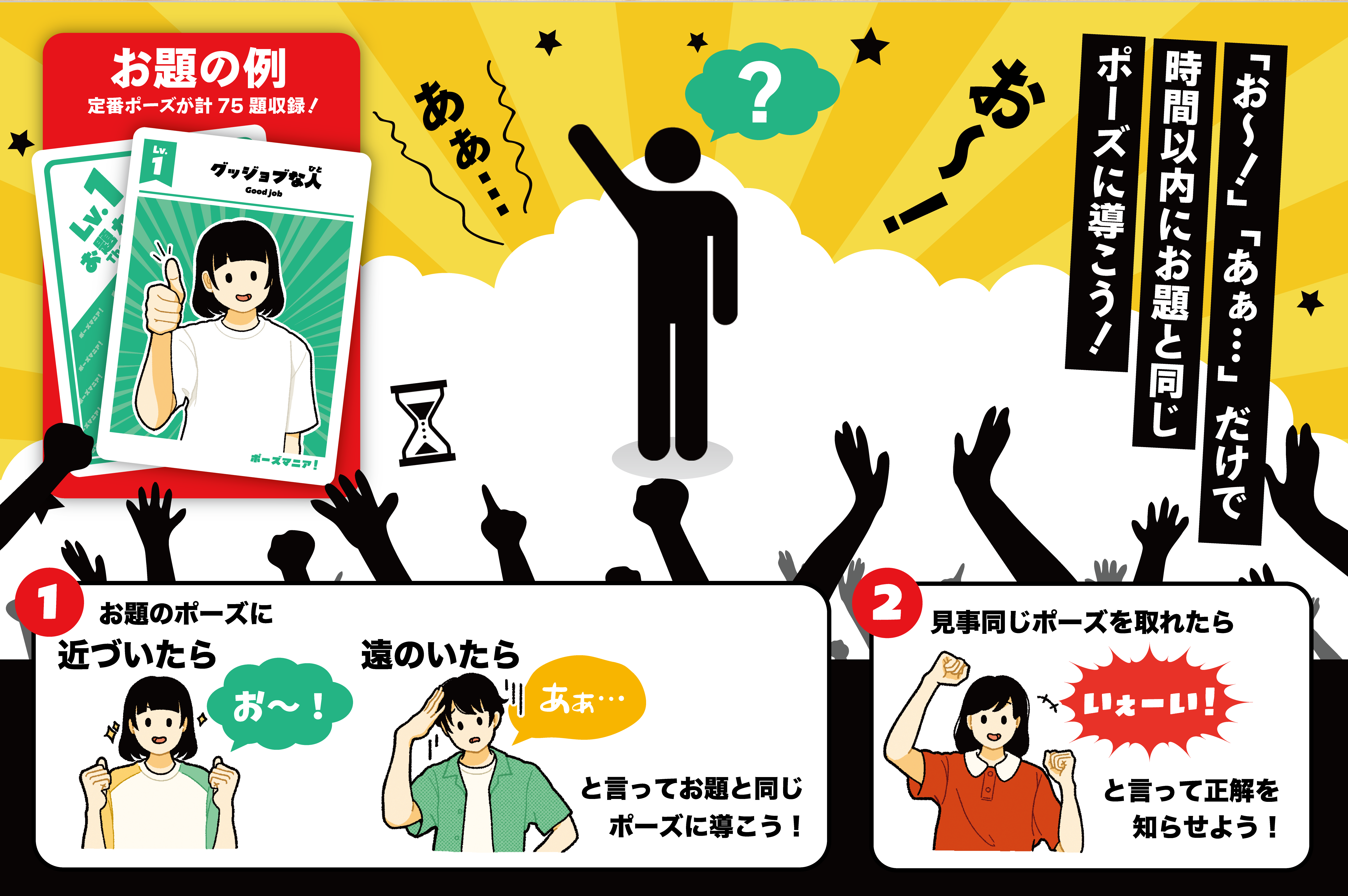 - 【両日K71】SNSにて遊んだ動画が400万回突破!!うるさすぎるパーティーゲーム『ポーズマニア!』絶賛予約受付中!