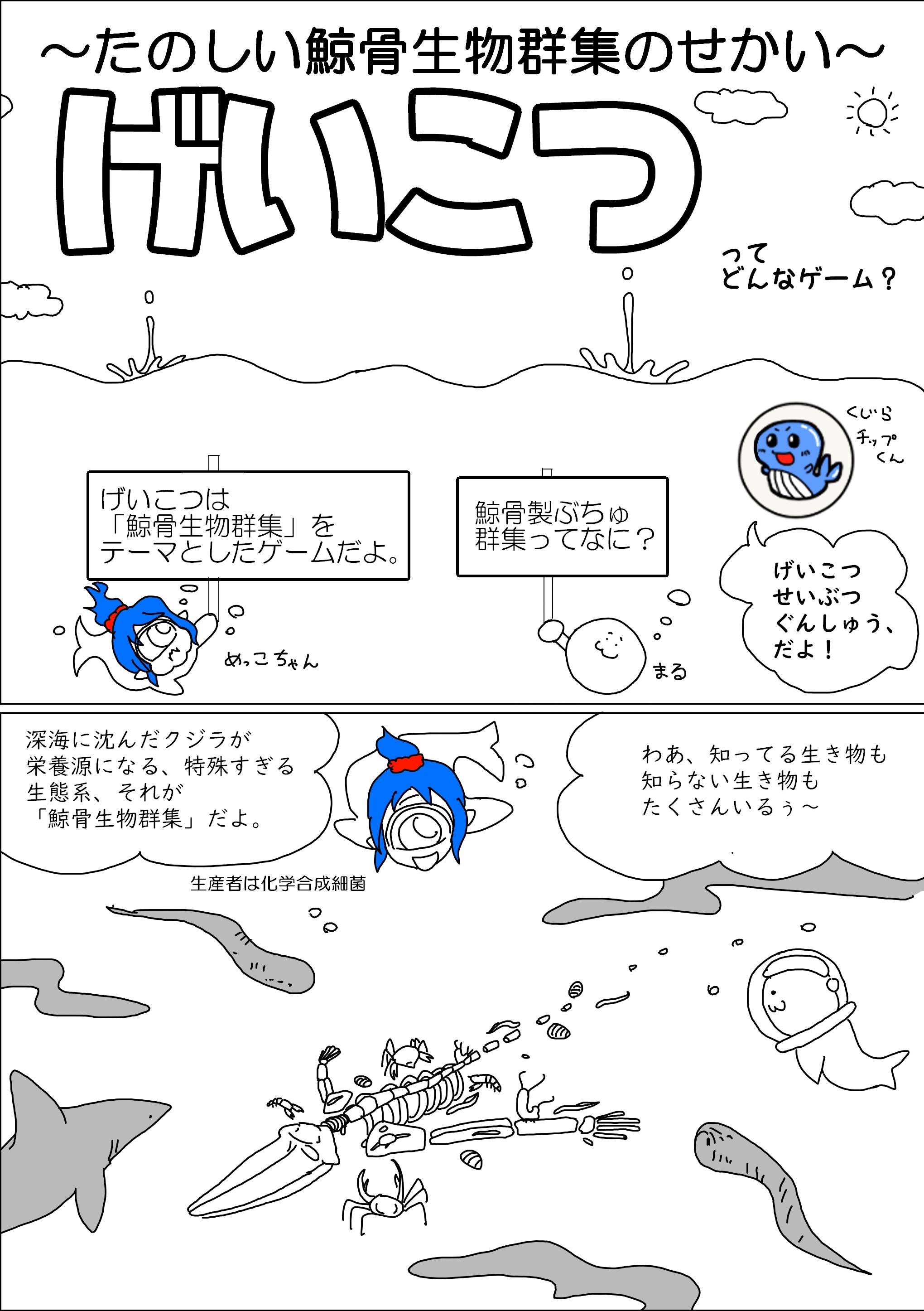 たのしい鯨骨生物群集ゲーム「げいこつ」がよくわかる!チラシ漫画を描きました。