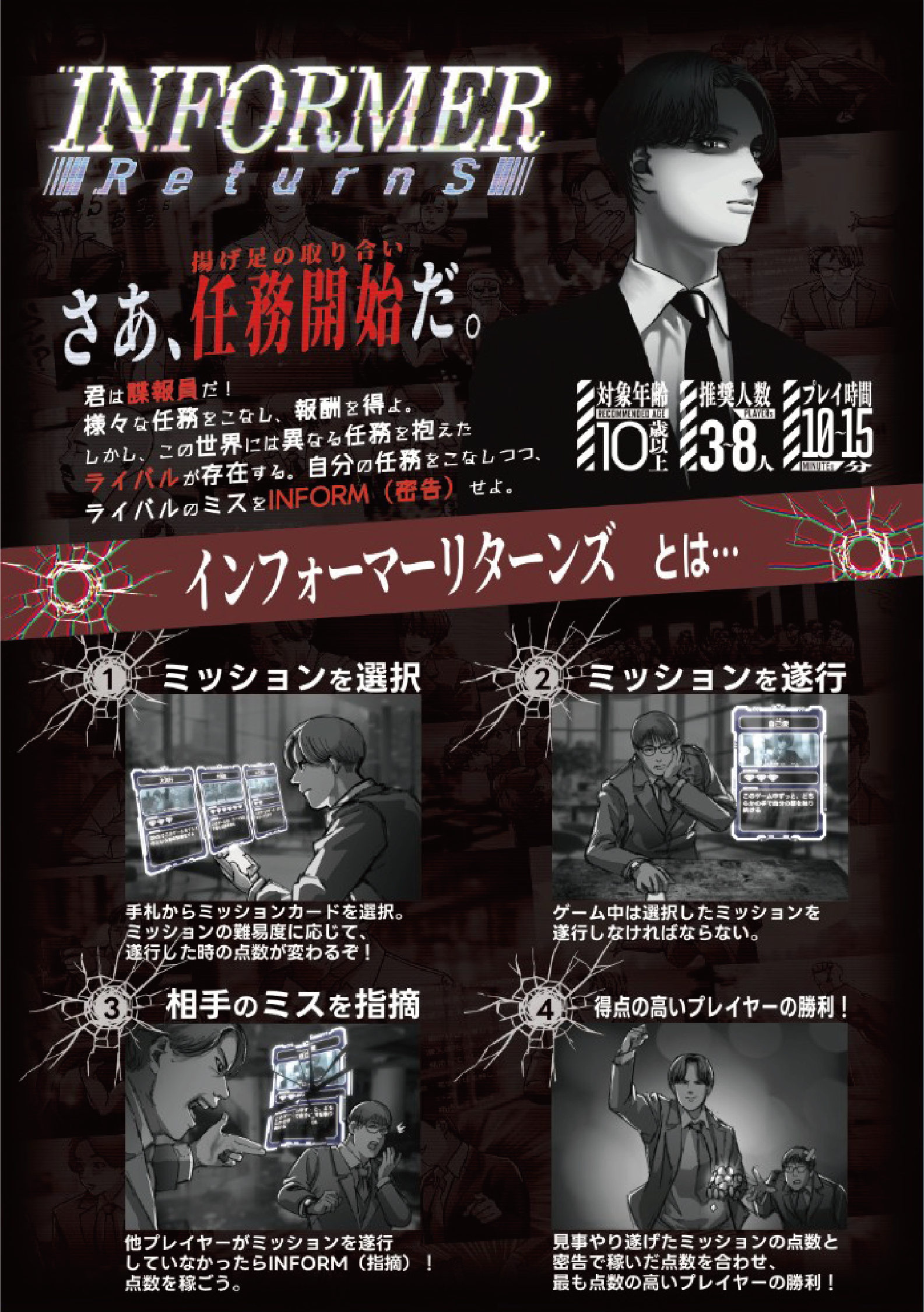 ※「インフォーマー リターンズ」は、再販に伴い一部パッケージ、内容物をリニューアルしております。ゲーム内容に変更はございません。予めご了承ください。