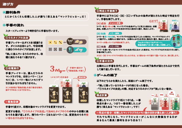 ”マンドラゴラを引っこ抜く”ゲームとして、いろいろなルールを試しましたが、いろんな方に、テンポよく遊んでほしい思いから最終的にかなりシンプルなルールとなりました!
