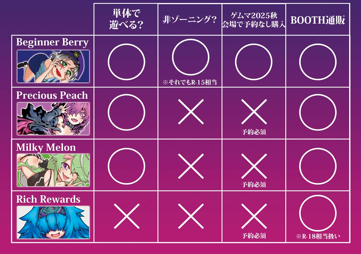 の2つに比べ、マイルドバージョンとして「Beginner Berry」を新たに頒布します。