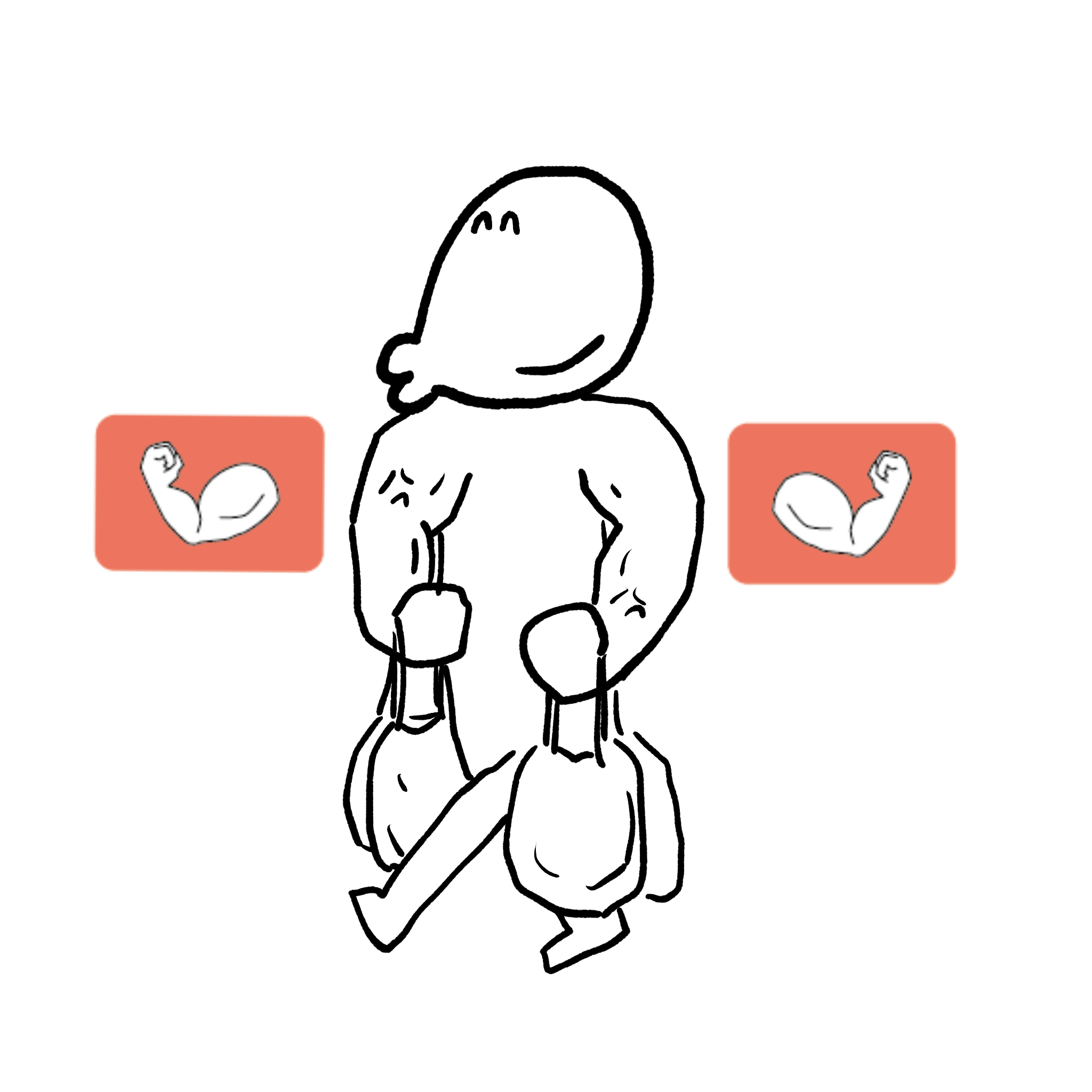 つまり筋肉チップは、買った食べ物を持ち上げる筋力を示しているわけです!