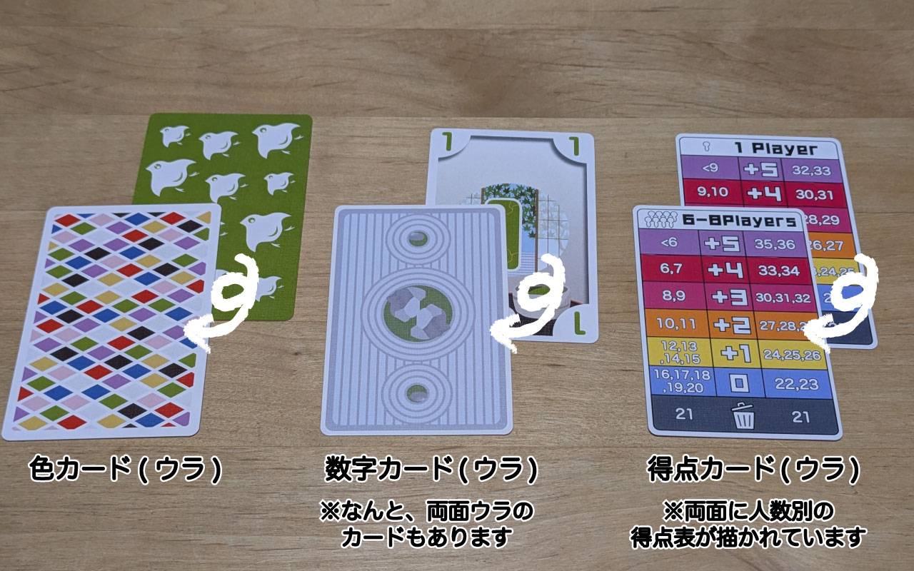 得点カードのウラメンは、プレイヤー人数に合わせた得点表が記載されています。ちなみにカード得点合計が「21」の場合は全得点没収のゴミ箱マークです…