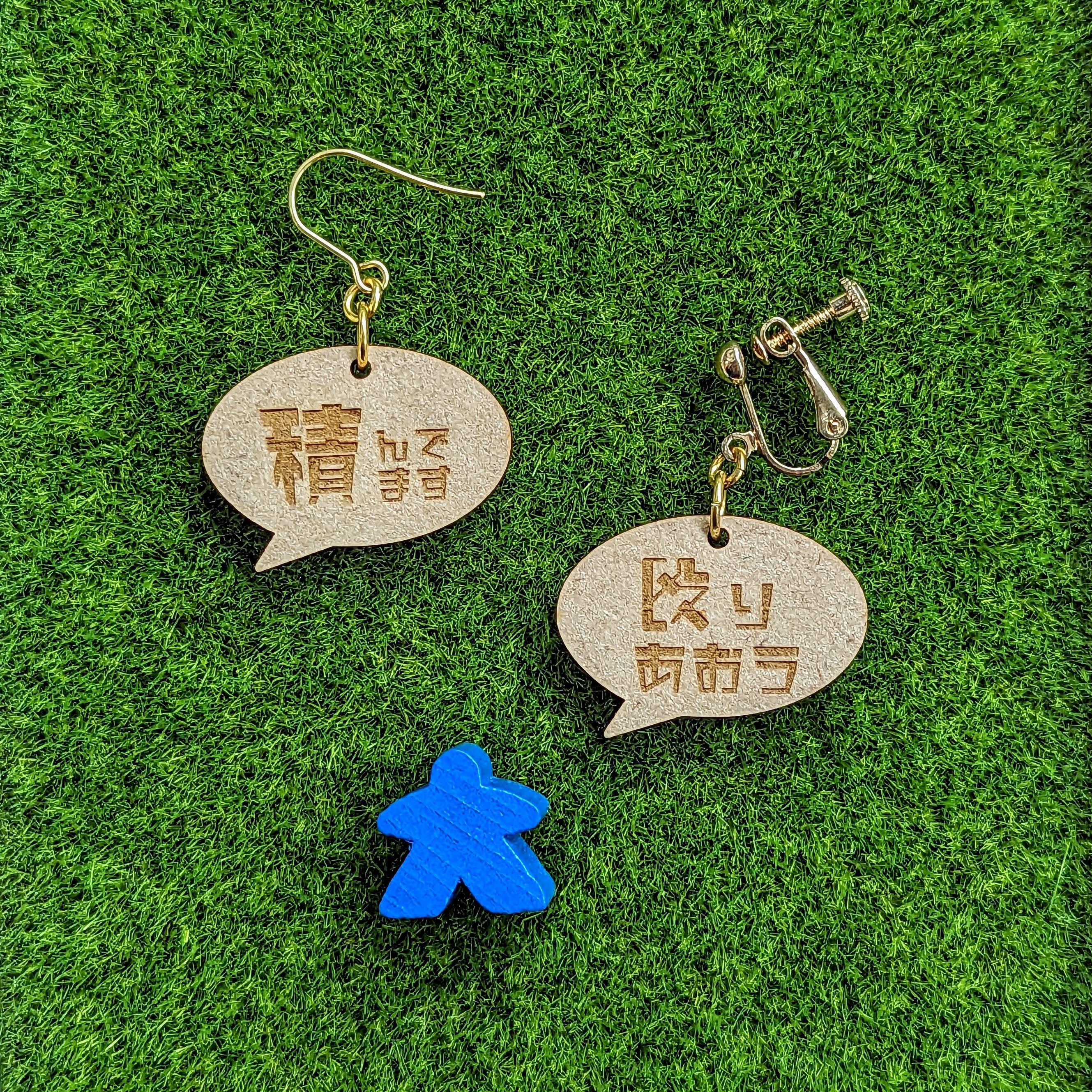 『ボドゲことば ピアス/イヤリング』 (製作:アクセサリー工房 ころん、ゆらん)