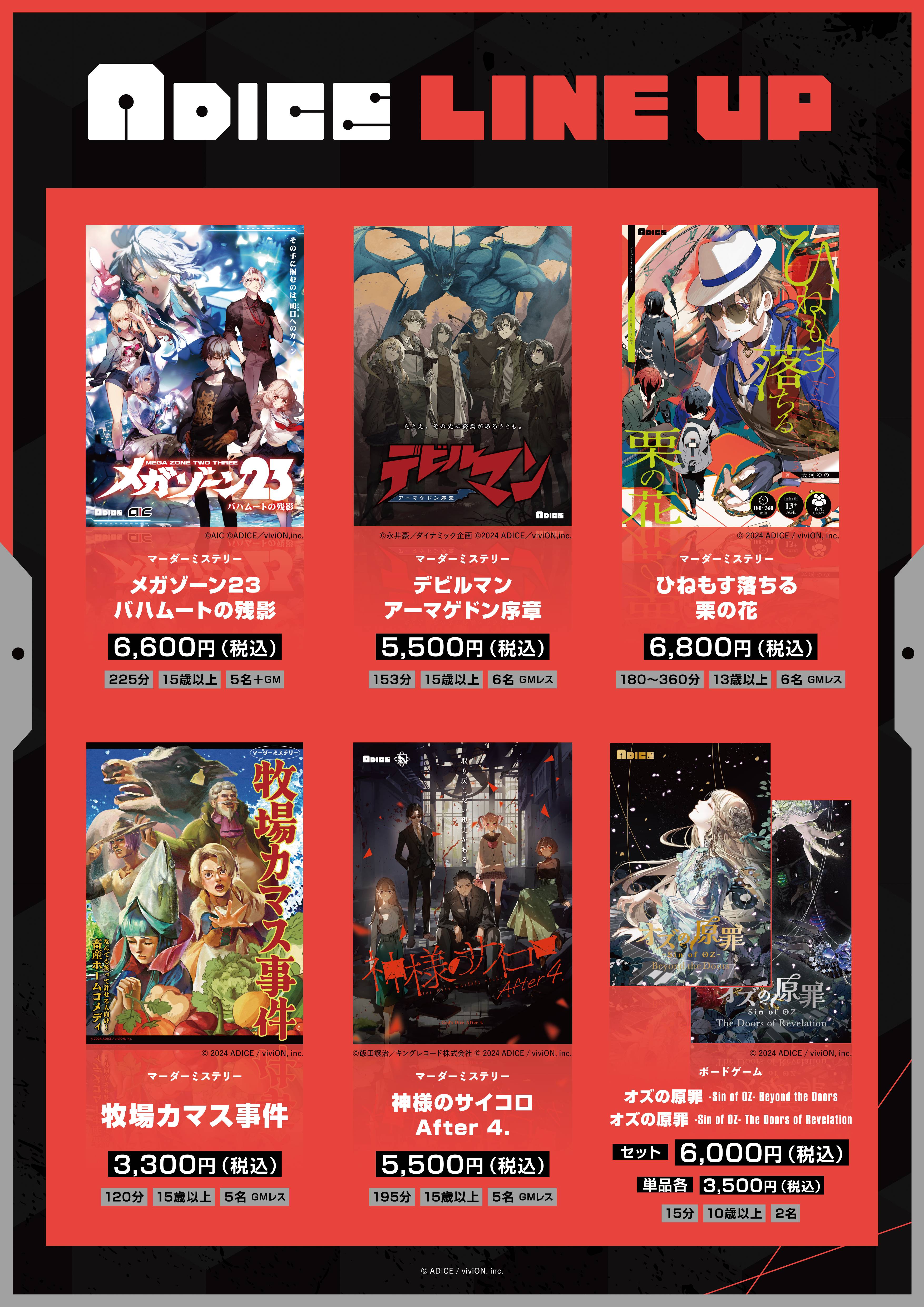 ※会場でご購入いただいた商品に不良があった場合は、ADICE公式サイトよりお問い合わせください。また一部商品については、ゲーム内容の修正情報(エラッタ)をADICE公式サイトにて公開しております。