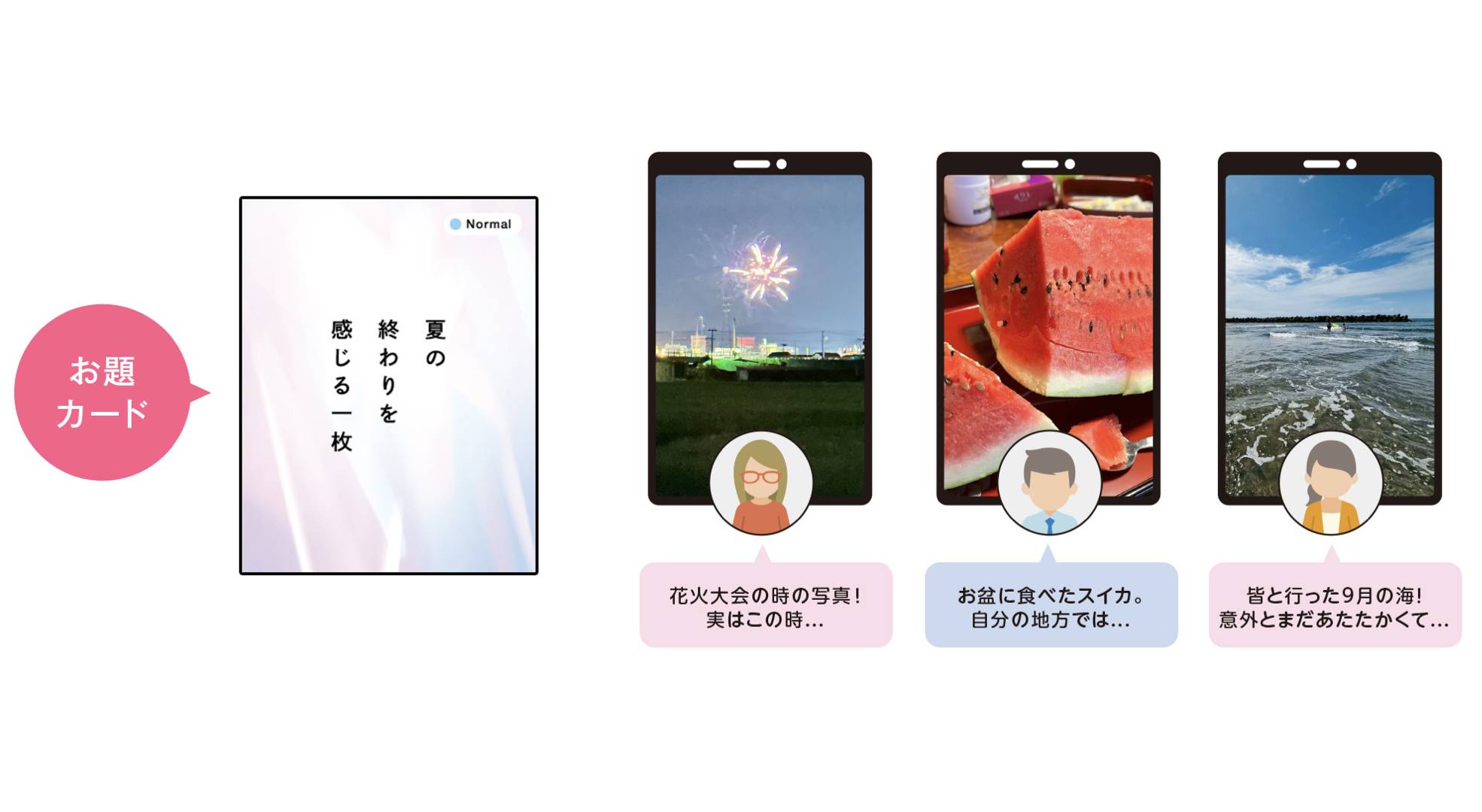 スマホの写真を手札にして思い出を語り合うゲームです。