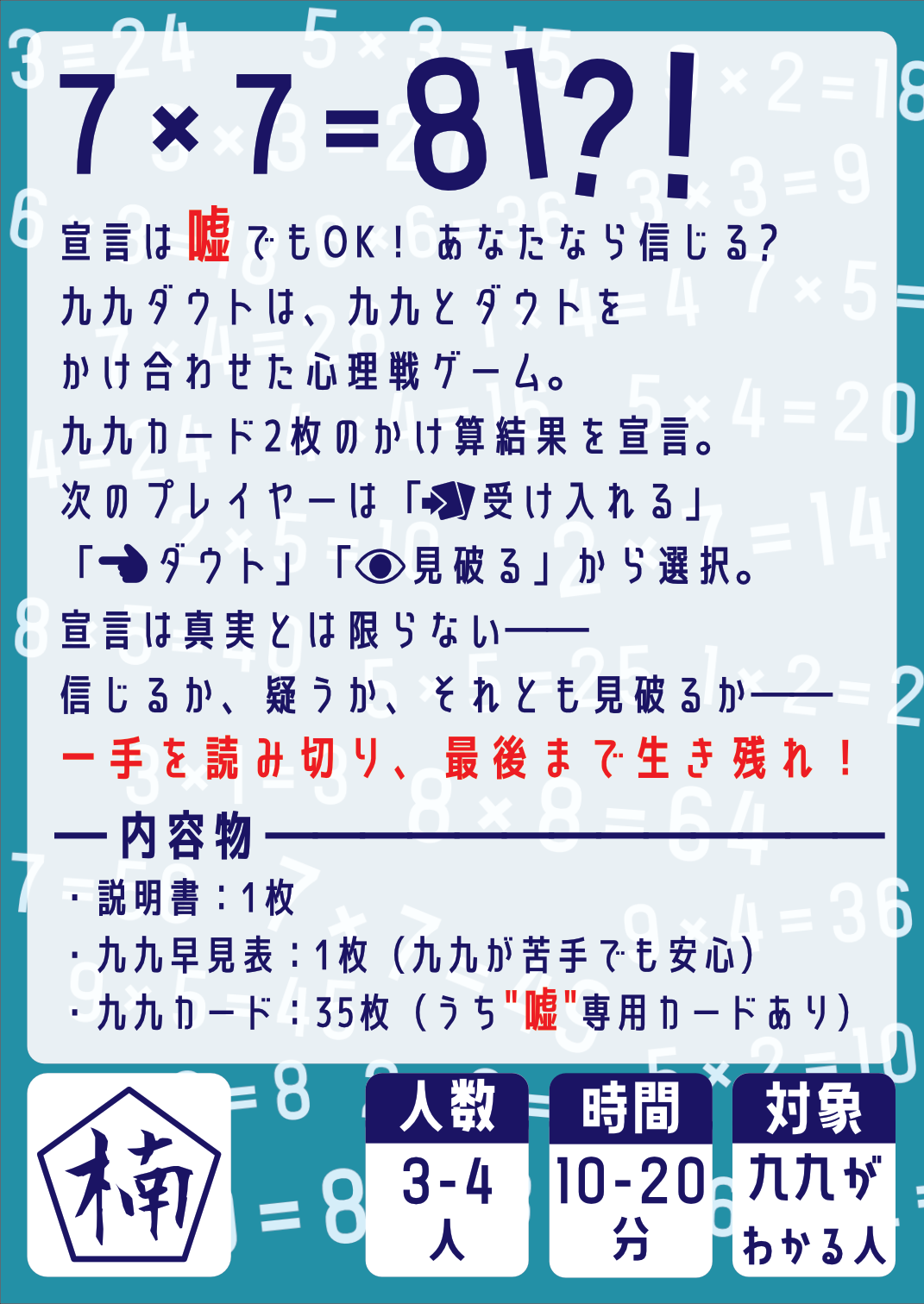 ファブフィブをベースにした、サクッと遊べるブラフゲームです。