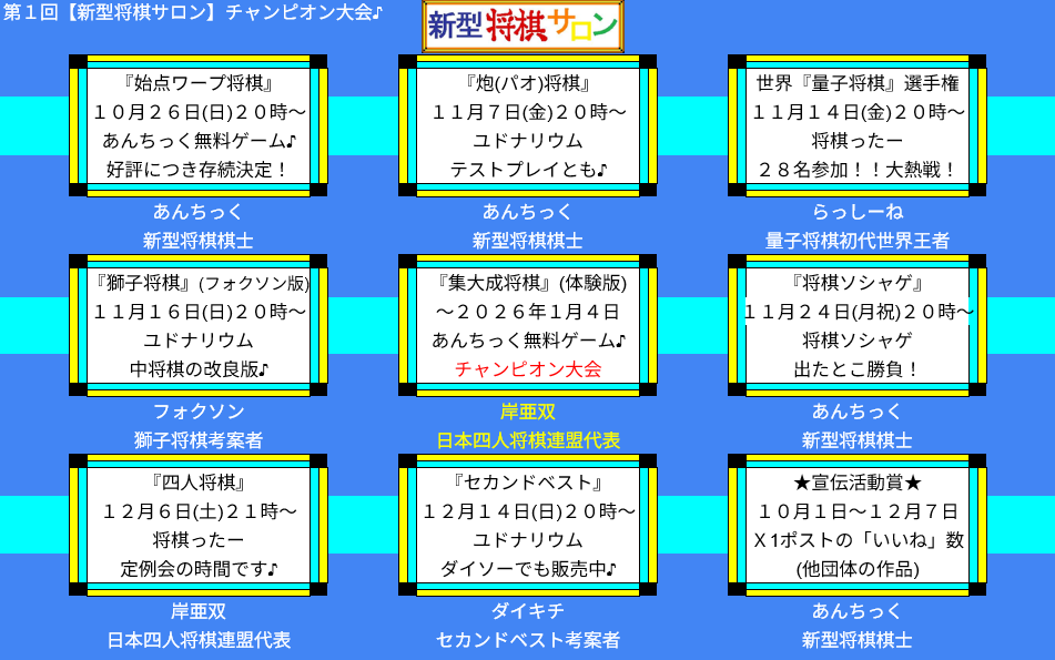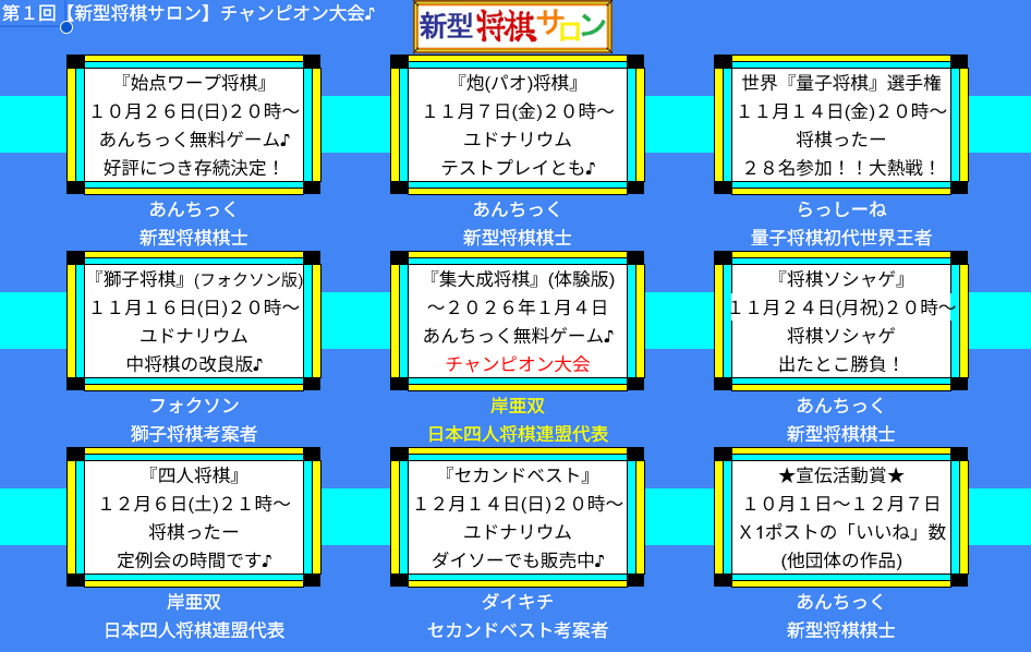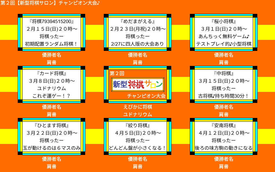 - 第2回【新型将棋サロン】チャンピオン大会開催!\(^ワ^)/