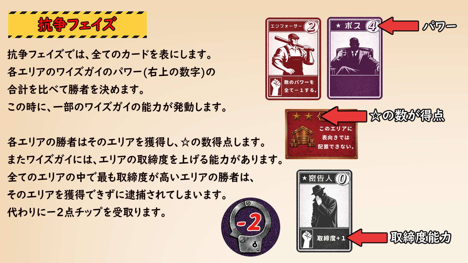 2人用のゲームで、個性豊かなマフィアの構成員(ワイズガイ)を揃えて、利権のあるエリアを奪い合うゲームです🔫