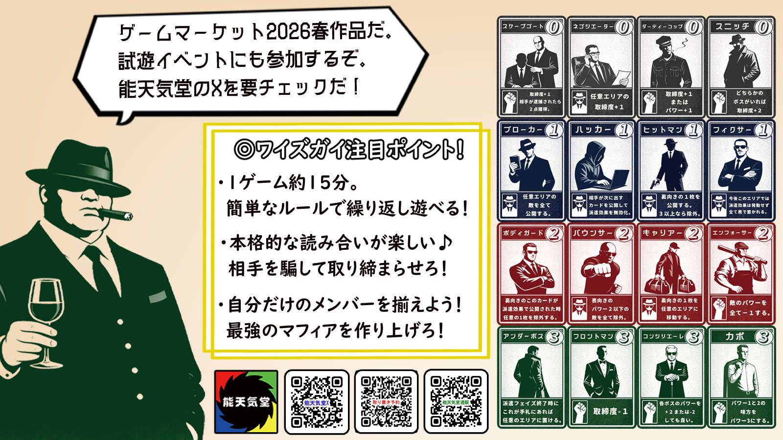 【土-G15】2人用手札構築マフィア抗争ゲーム『ワイズガイ』ご予約受付中!